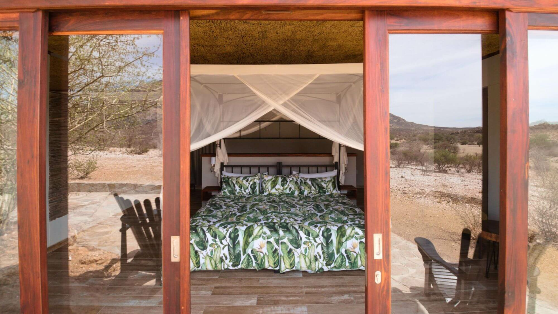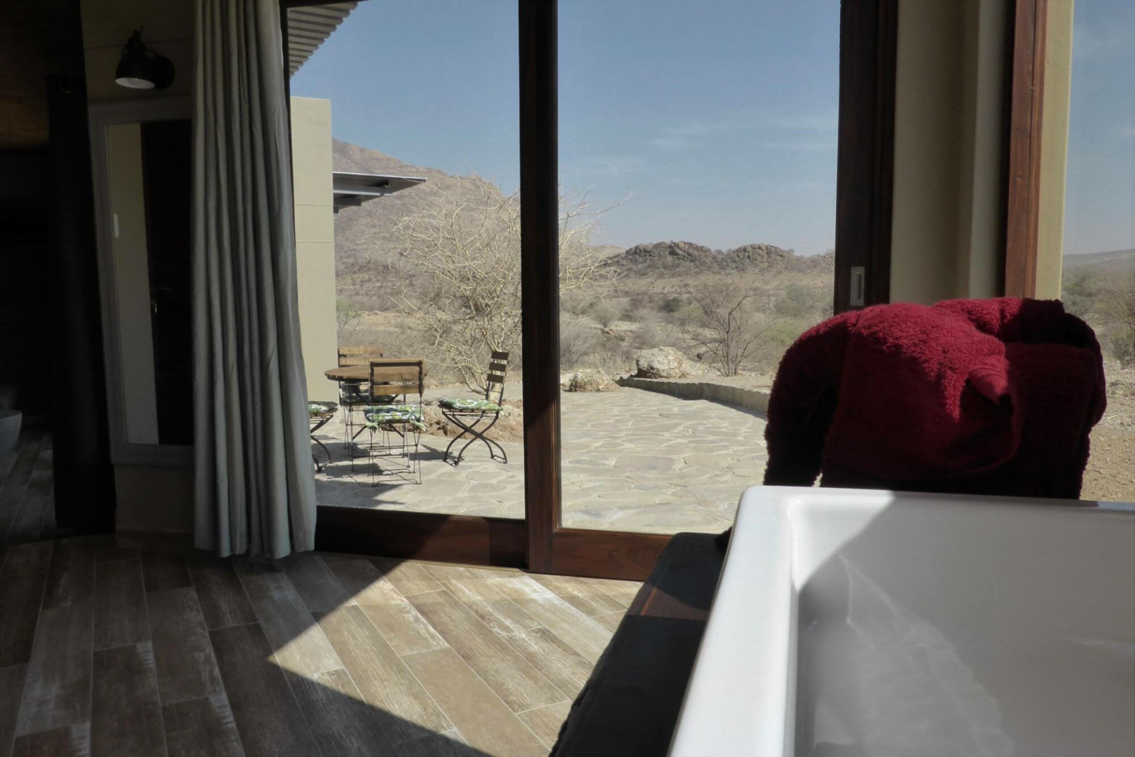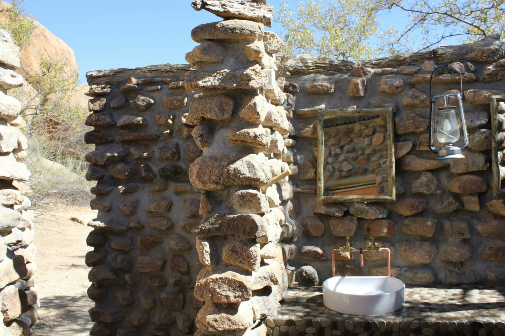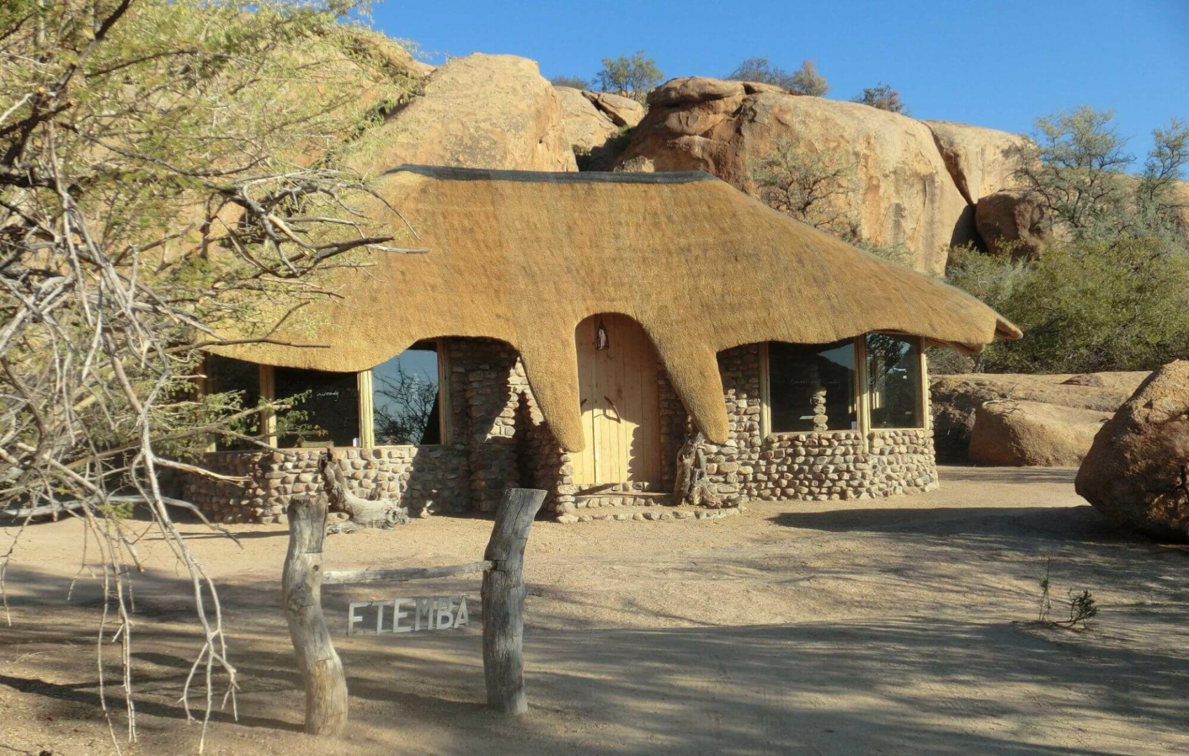 Am Fuße eines riesigen Felsenbrockens gelegen überzeugt die Ai Aiba Lodge im Nordwesten des Erongo-Gebietes im Westen Namibias aufgrund der spektakulären Lage in einem Gebiet reich an Jahrtausend alte Buschmann-Felskunst.