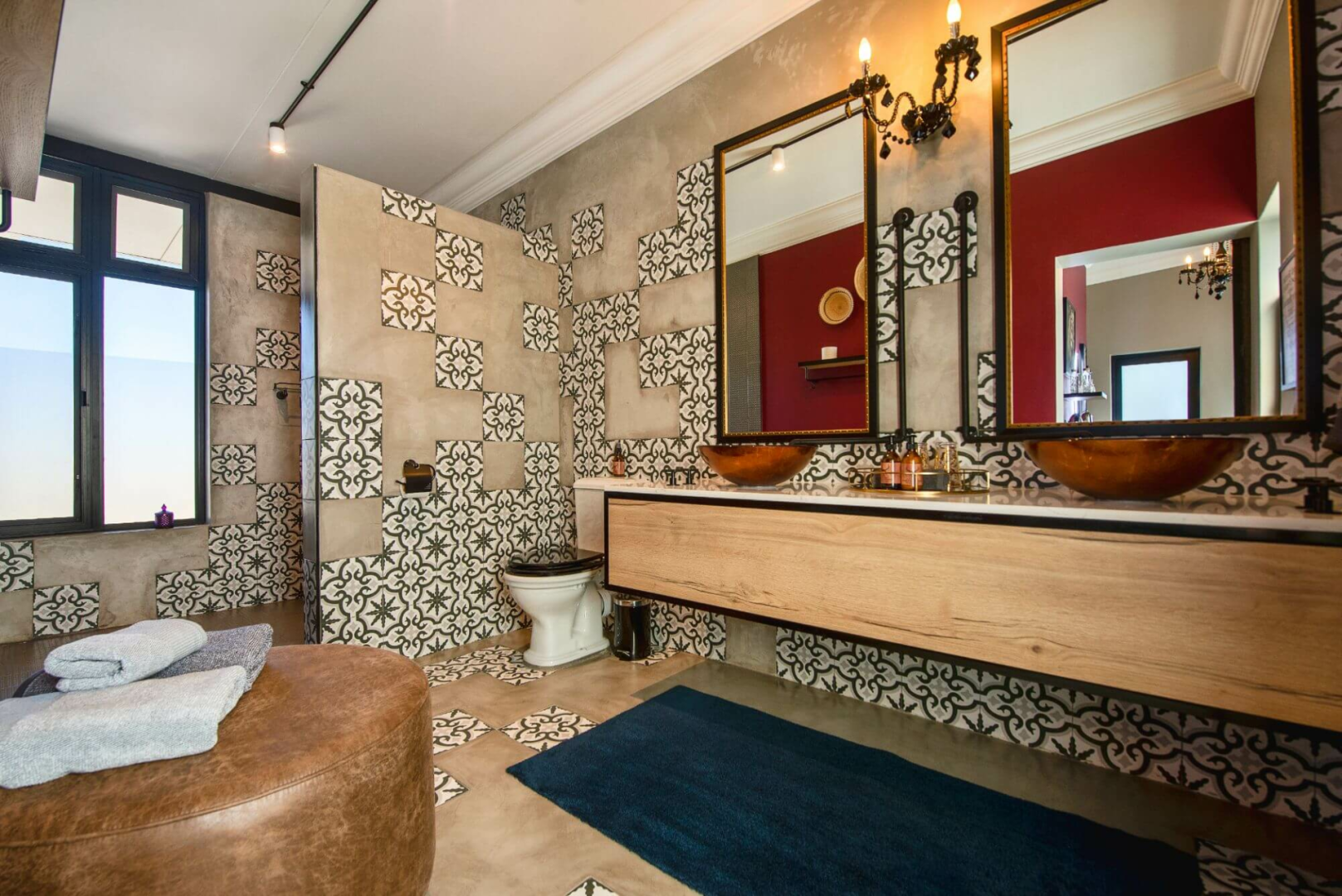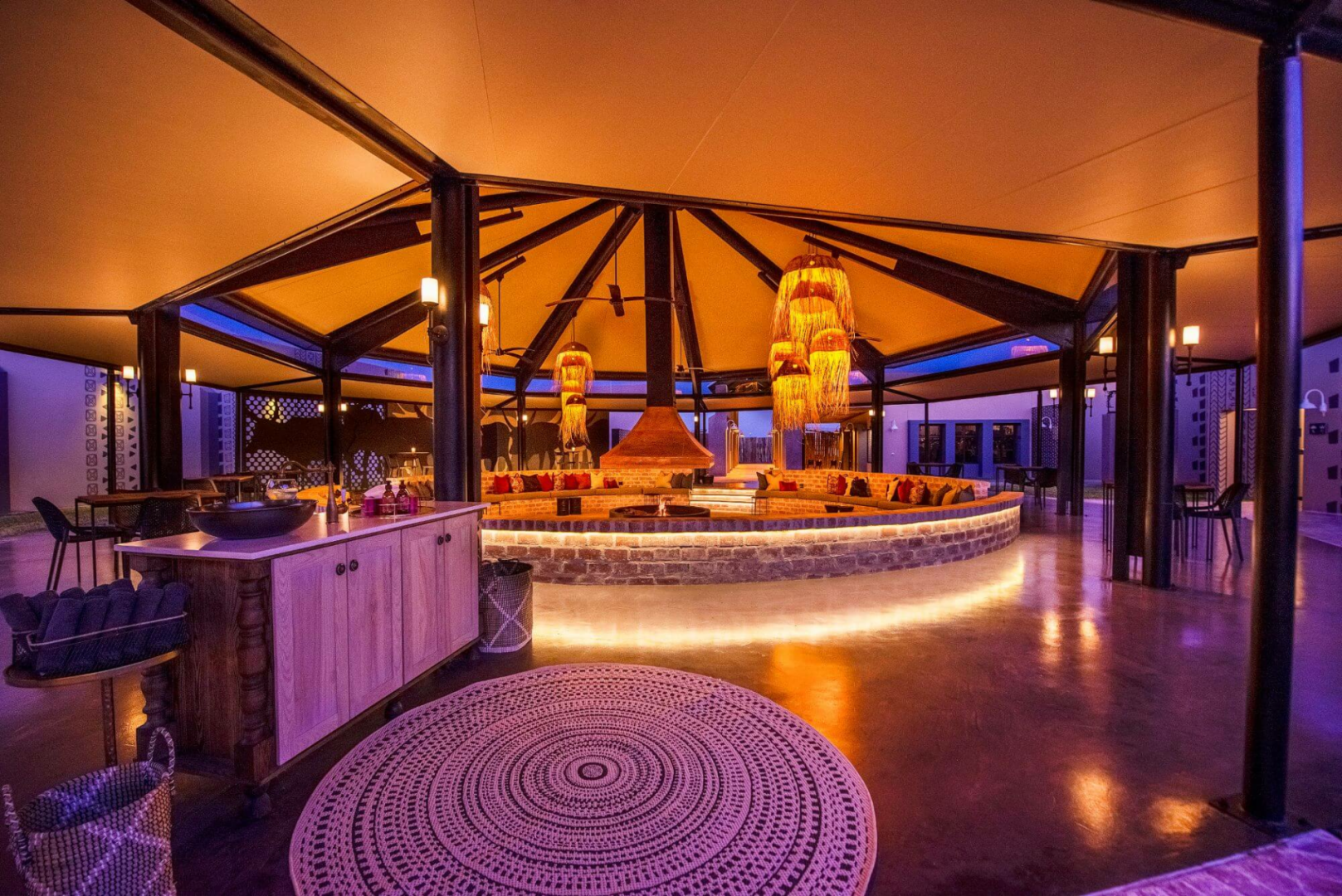 Diesen erwarten ultramoderne und vielleicht sogar etwas dekadente gemeinsame Bereiche mit opulenten Kronleuchtern, Mosaik verzierten Böden, eine Hype-Bar, die genauso gut zu New York passen würde, Gemälde in Schwarz und Weiß und ein Hybrid aus Feuerstelle und Kamin mitten in einem mit Kissen ausgelegtes Amphitheater.
