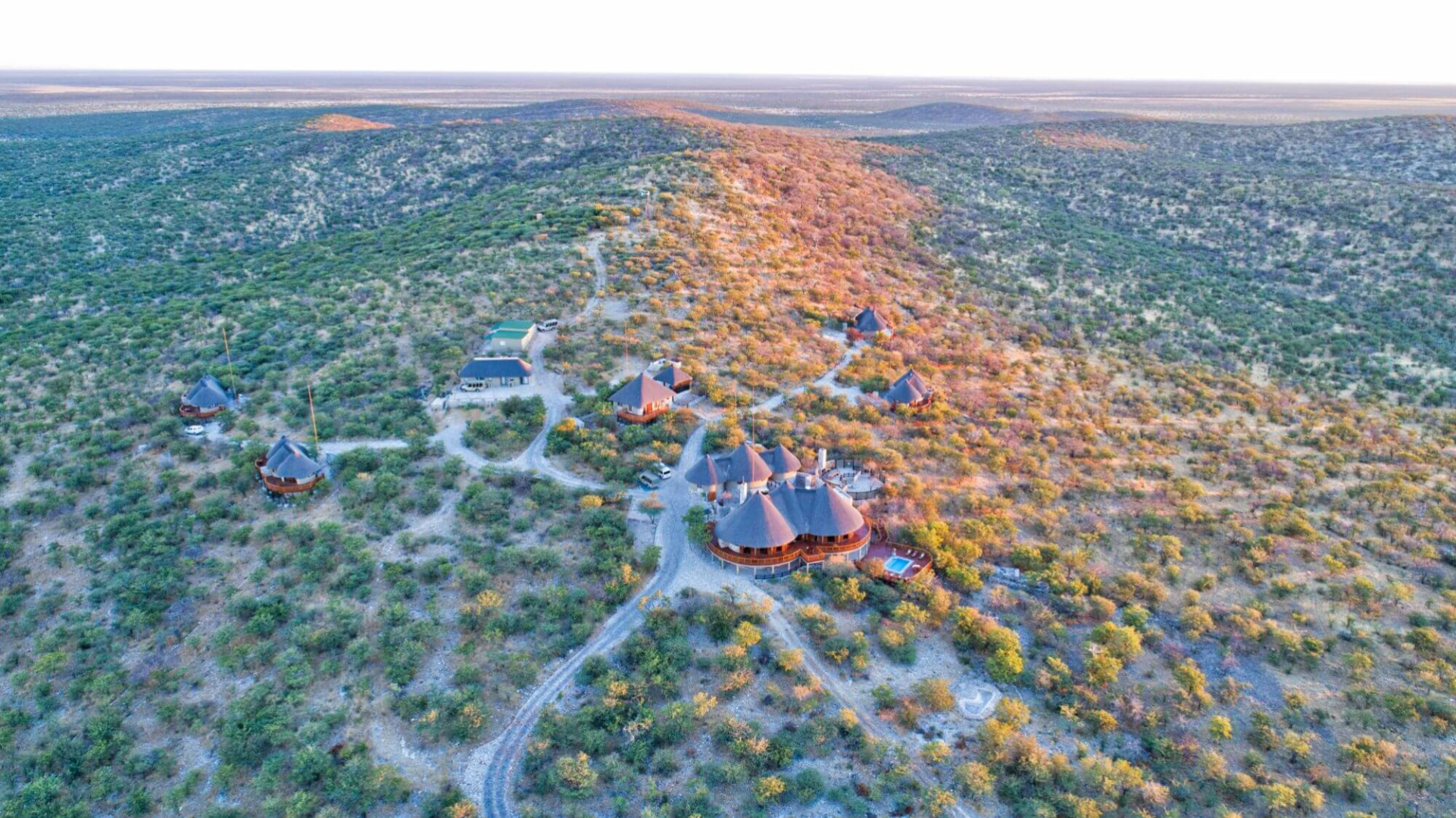 Die Etosha Mountain Lodge befindet sich in einem 600 Quadratkilometer großen Etosha-Heights-Privatreservats, ca. 1 Stunde Fahrtzeit westlich vom Anderson’s Gate entfernt, an der südwestlichen Grenze von Etosha im nördlichen Zentralnamibia.