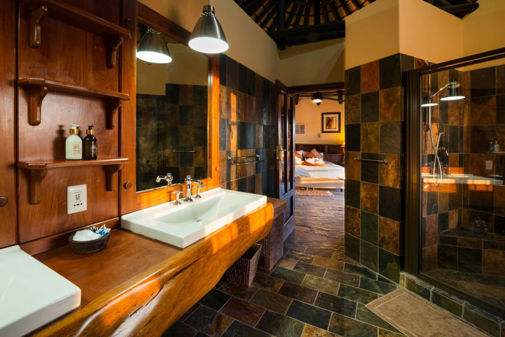 Gäste werden in fünf strohgedeckten Chalets mit Privatbad, Dusche und Badewanne und eigener Aussichtsplattform, die jeweils zwei Zimmer beherbergen.
