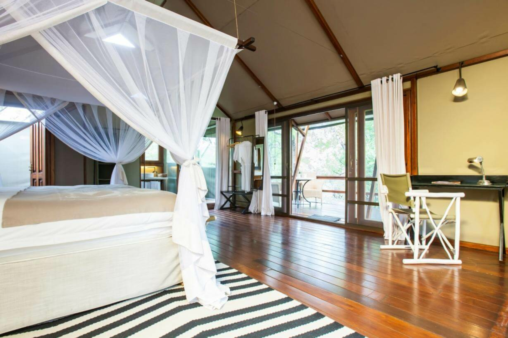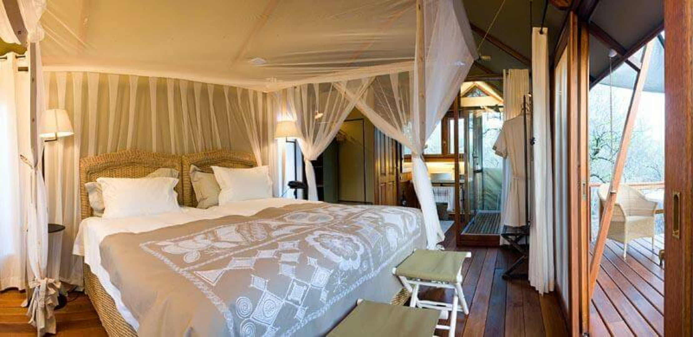 Gäste werden in acht Luxuszelten untergebracht, die auf Stelzen hoch über dem Boden errichtet wurden. Die Zelte haben eine große Holzveranda mit Stühlen. Jedes Zelt hat ein Doppelbett oder zwei Einzelbetten, die mit Moskitonetzen drapiert sind. Außerdem finden Sie eine Minibar, eine Klimaanlage, einen kleinen Safe, eine Kaffeestation, ein Telefon und einen Haartrockner. Ein privates Badezimmer mit Innendusche ist natürlich vorhanden.