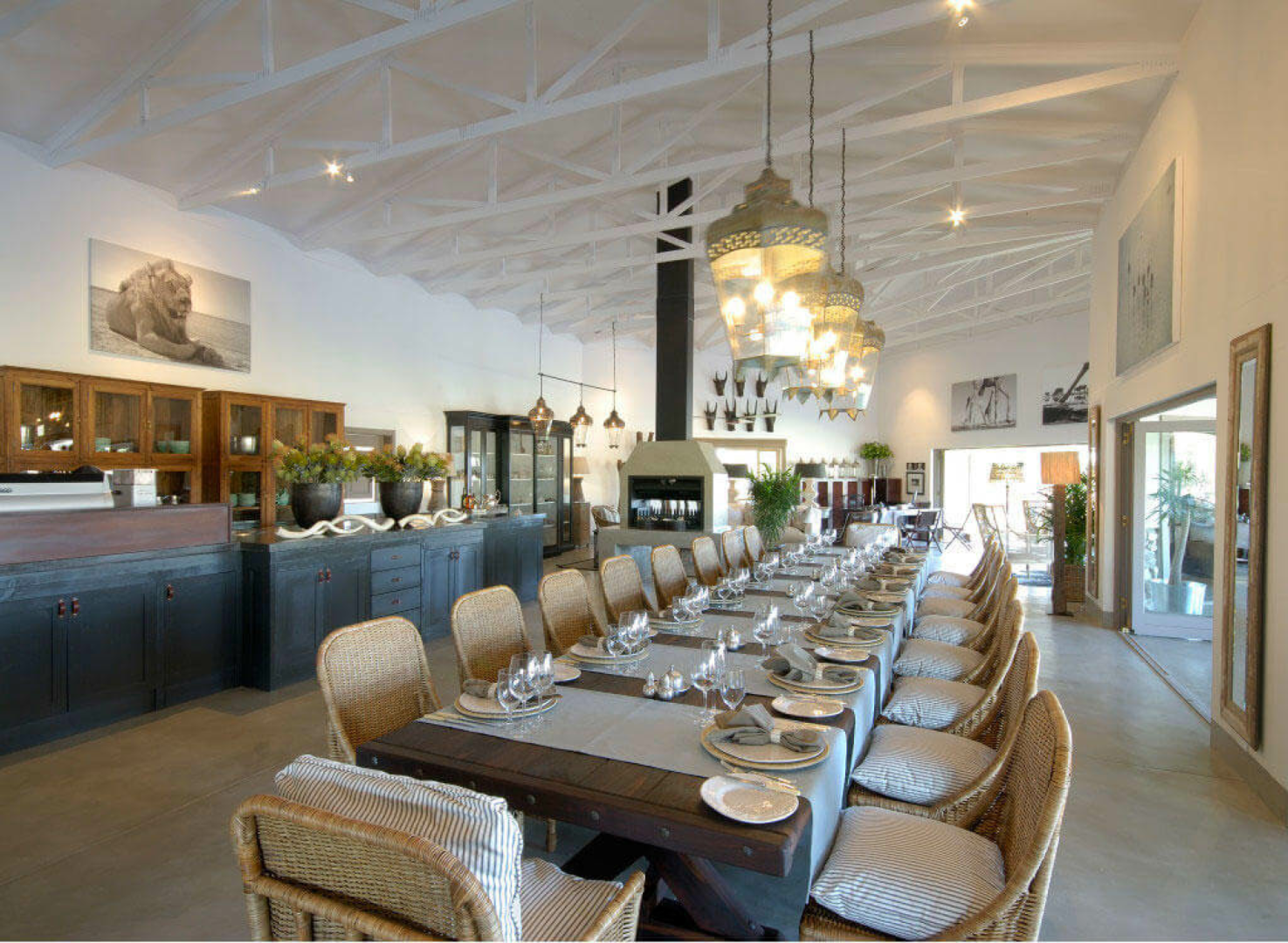 Die gemeinsamen Bereiche sind äußerst stilvoll. Angefangen vom von zwei riesigen Keramiktöpfen geschmückten Haupteingang zur im Farmlook gebauten Lodge. Drin befindet sich ein sehr opulenter Wohnbereich, komplett mit Kamin, Ledersesseln, Rattanteppichen, Deckenventilatoren, dunklen Möbeln, Glasvitrinen mit ausgestellten Kunsthandwerken aus Silber, faszinierenden Tierportraits und Kunstgegenständen an den strahlend weißen Wänden ausgestattet.
