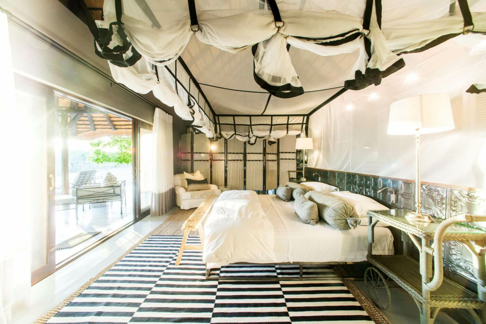Dabei handelt es sich um zwei frei stehende unabhängige und mit 140 m² Größe unglaublich geräumige Villas, jede mit Wohnzimmer, Essraum, Planschbecken und einem großen Schlafzimmer mit Outdoordusche und frei stehender Badewanne ausgestattet. Die Einrichtung ist im Kolonialstil gehalten.