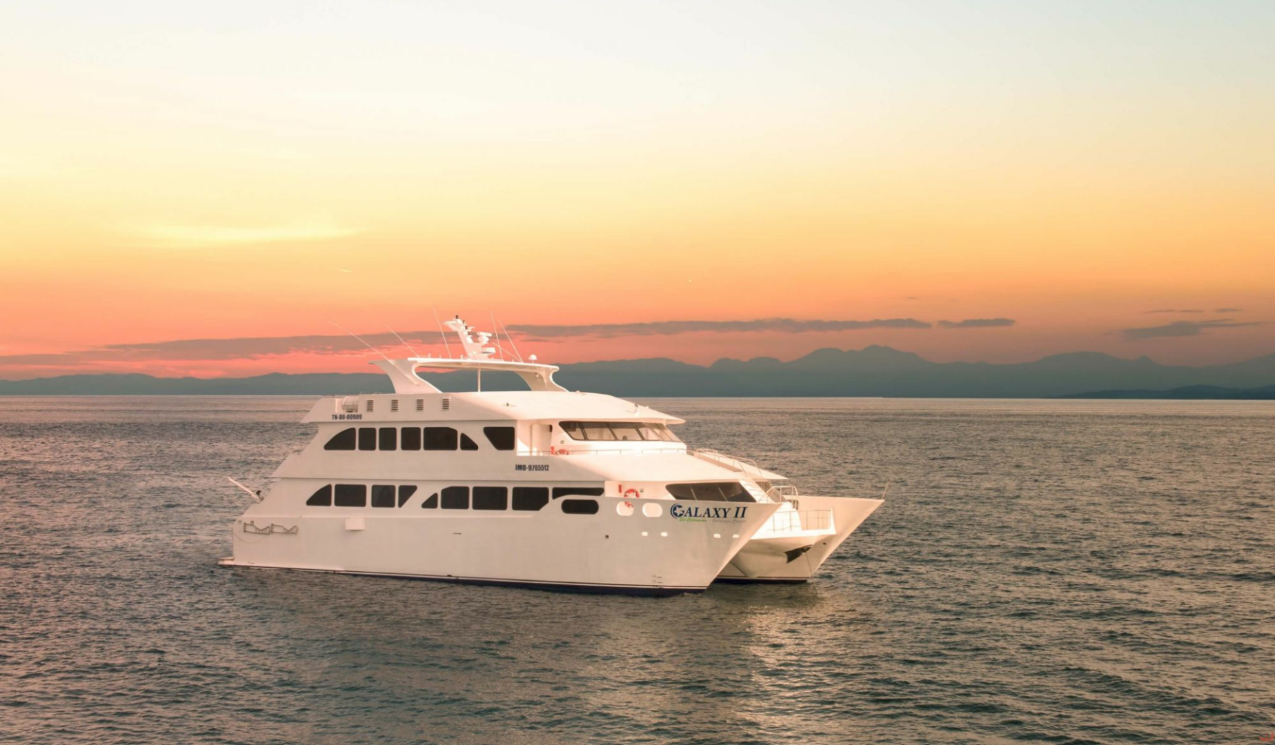Eco Galaxy II ist ein Katamaran der oberen Preisklasse mit acht in modernem Stil eingerichteten, bequemen Kabinen mit großen Panoramafenstern und sehr dezent dekorierten gemeinsamen Bereichen.