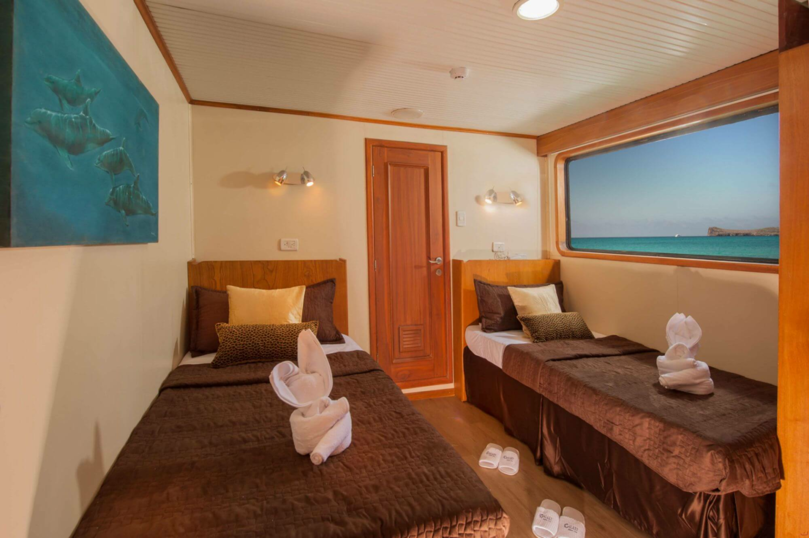 Mit nur 7 Kabinen und maximaler Aufnahmekapazität für zwölf bzw. vierzehn Kreuzfahrtsteilnehmern sind die Nemo I und ihre Schwesterschiffe Nemo II und Nemo III gerade für Individualreisende, die nach einer außergewöhnlichen Erfahrung auf Galapagos suchen, eine äußerst reizvolle Wahl.