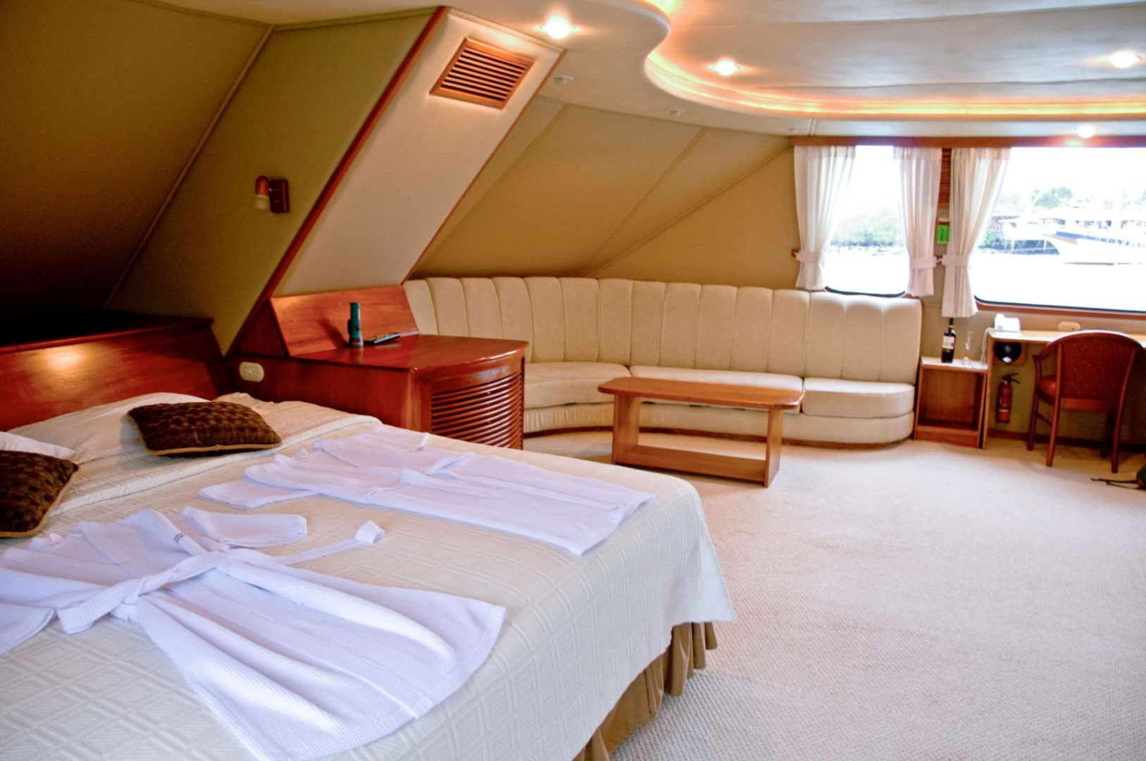 Mit nur 7 Kabinen und maximaler Aufnahmekapazität für zwölf bzw. vierzehn Kreuzfahrtsteilnehmern sind die Nemo I und ihre Schwesterschiffe Nemo II und Nemo III gerade für Individualreisende, die nach einer außergewöhnlichen Erfahrung auf Galapagos suchen, eine äußerst reizvolle Wahl.