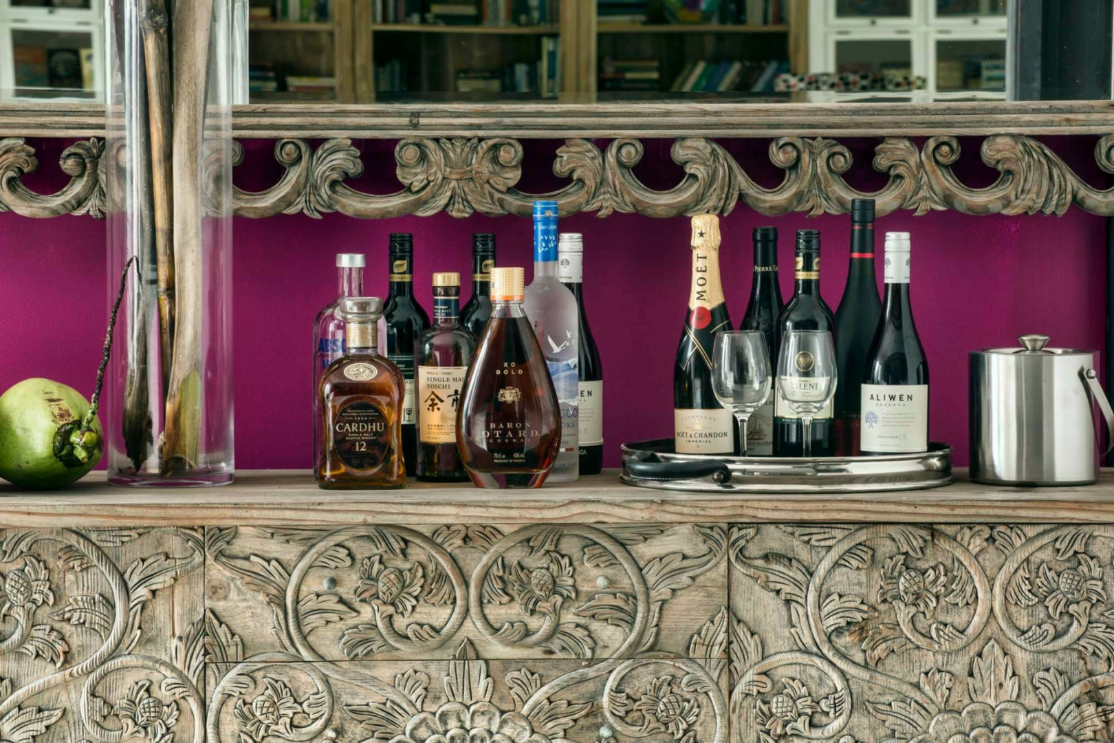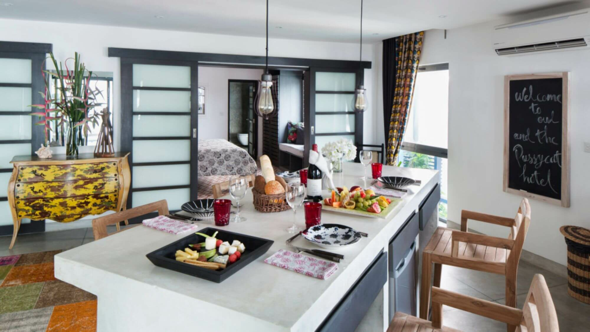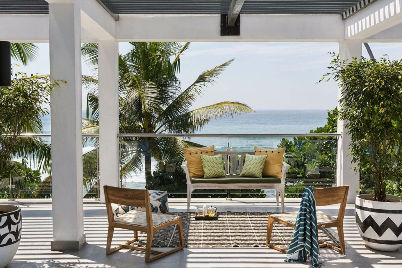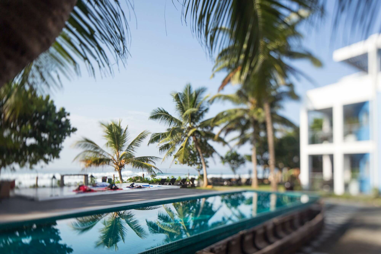 Das Owl and the Pussycat, etwa 20 Autominuten von Galle entfernt, bietet 17 schrullige, große Suites in leuchtenden Farben, luftige, riesige Bäder im Industrie-Look und Meerblick. Die Gemeinschaftsräume sind ebenso künstlerisch gestaltet, mit vielen Kunstwerken an den Wänden und auf den Tischen, Sofas mit bunten Kissen und Bücherregalen aus Holz, die dazu einladen, sich mit Lesestoff zu versorgen, den man draußen am Pool genießen kann.