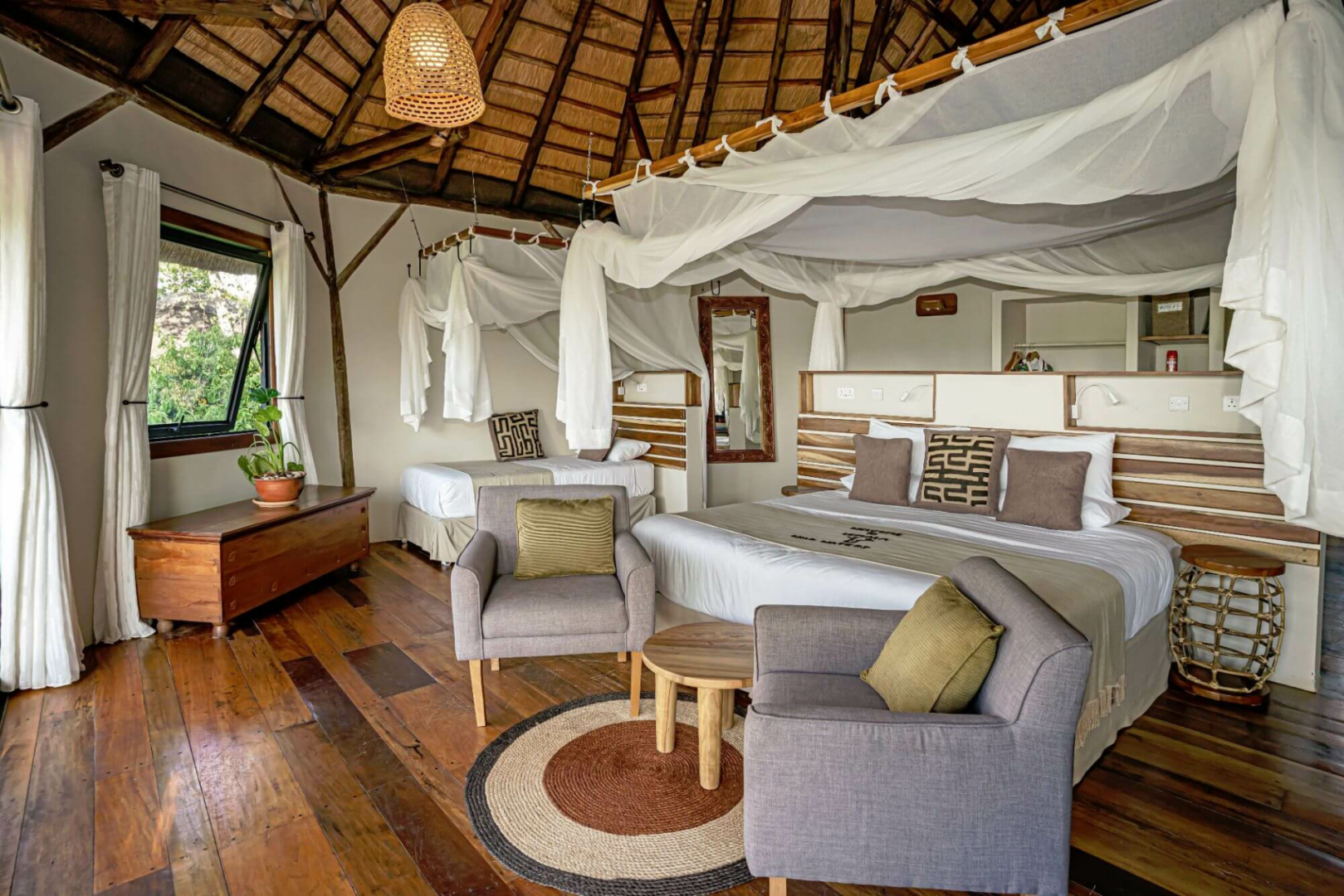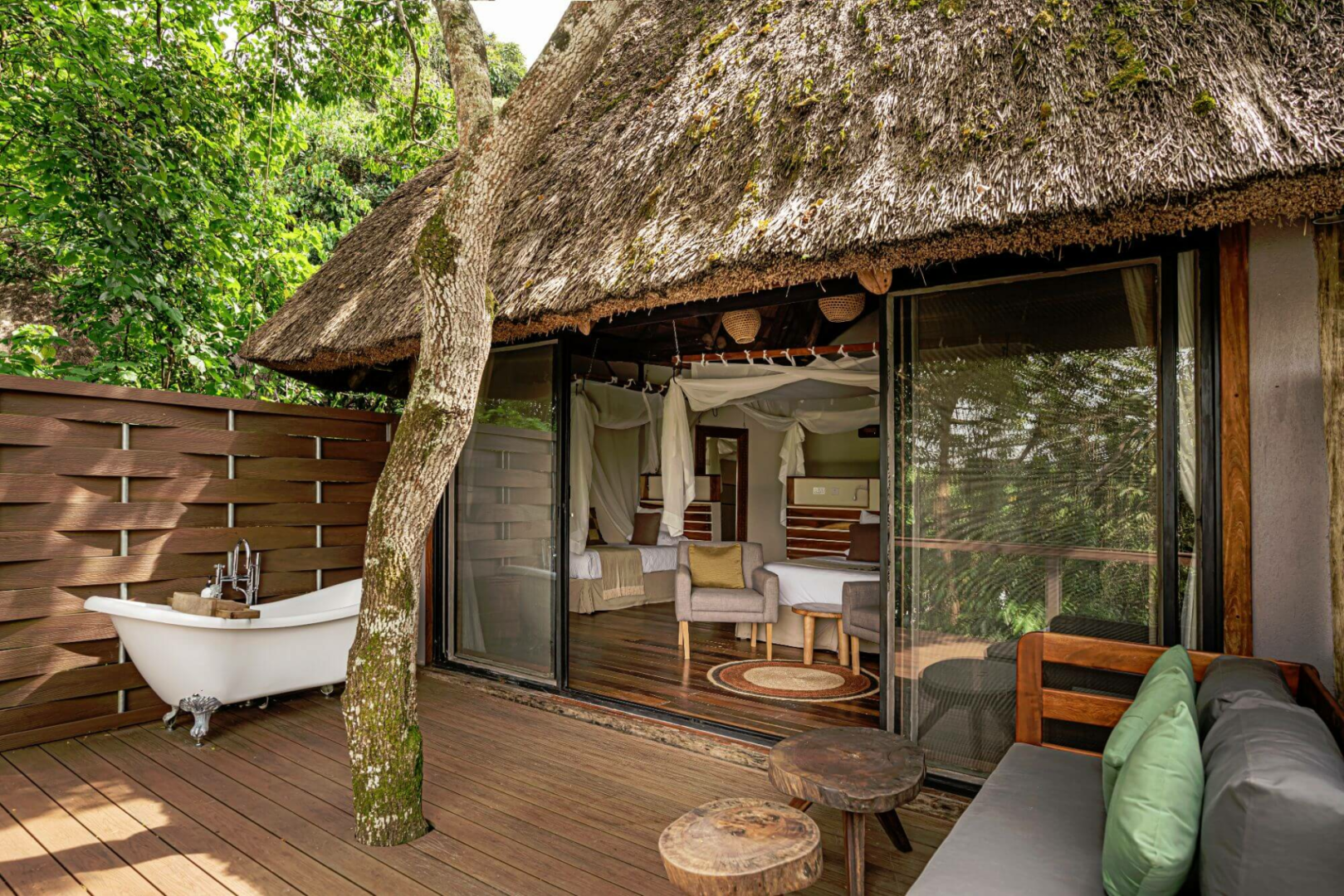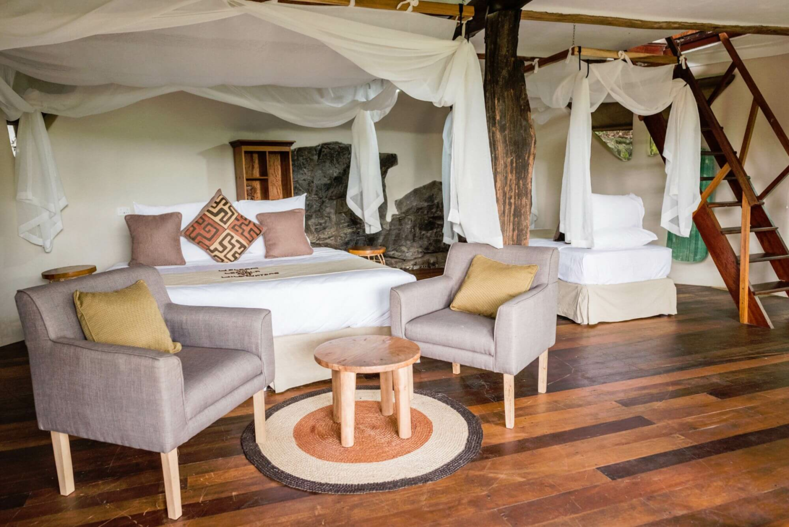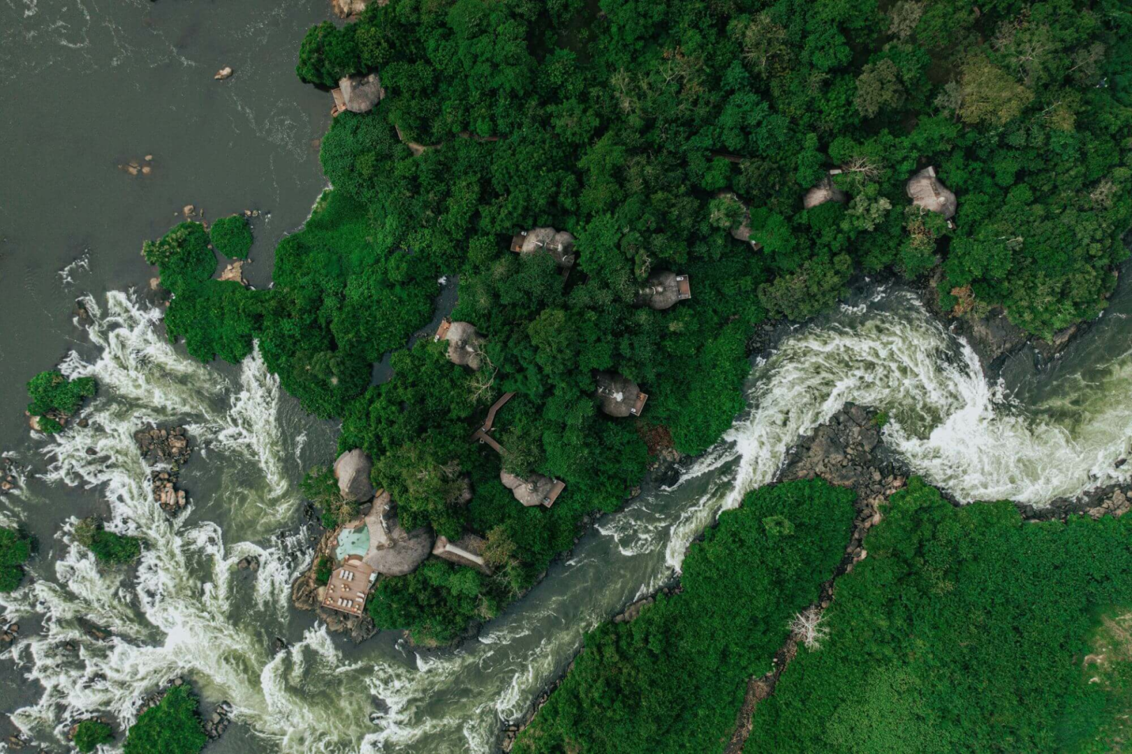Die Besitzer von Wildwaters hätten keinen passenderen Namen für eine Lodge wählen können, die buchstäblich von Stromschnellen umgeben ist. Wildwaters liegt wunderschön auf einer bewaldeten privaten Insel im Victoria-Nil, rund 25 km von Jinja und ist spezialisiert auf Wildwasser-Rafting (von sanften Familien-Ausflügen bis Hardcore-Fahrten für Rafting Fans). Kajak fahren oder Bungee-Sprünge ins Wasser stehen auf der Speisekarte. Vogelliebhaber werden in ihrem Element sein, da der Wald um die Lodge herum unzählige Vogelarten beherbergt.