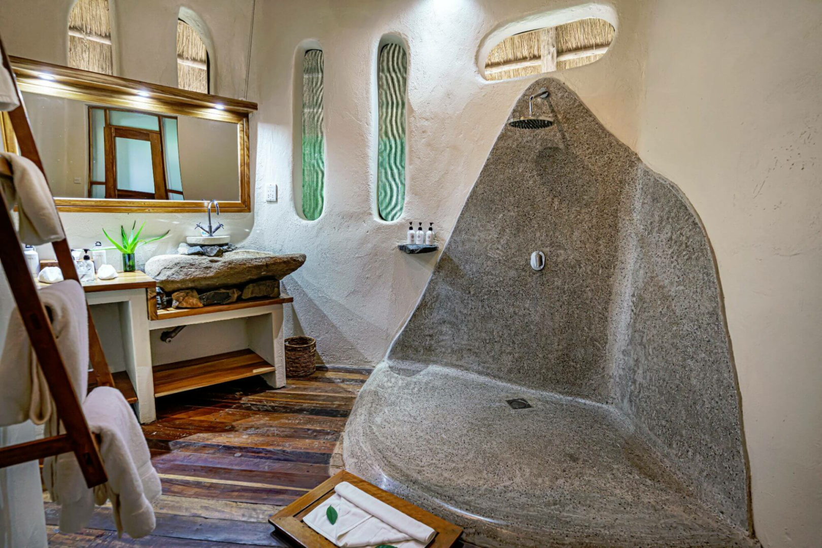 Bereichen rund einem schönen Pool. Die zwölf Gäste-Cottages aus Stein und