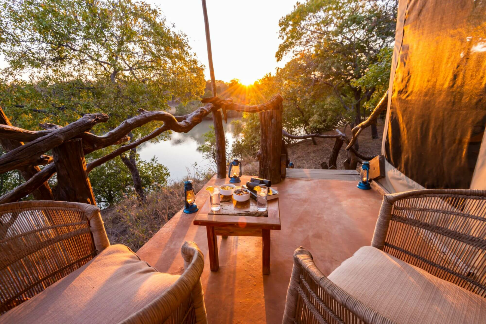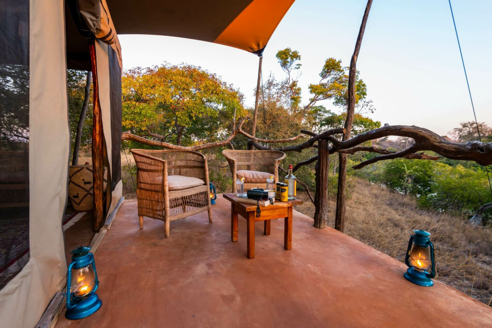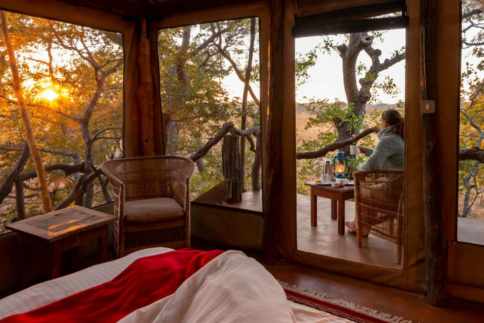 Fig Tree ist ein kleines und stilvolles Camp bestehend aus Baumzelten, die auf 3 m hohen Plattformen errichtet sind. Eine Holztreppe führt zu einer Plattform aus poliertem Stein und vor dem Zelt eine kleine Veranda mit Blick auf die Umgebung. Die Zelte sind ausreichend komfortabel und sind mit Doppelbetten, Korbstühlen und einem Holzschrank ausgestattet. Hinter dem Zelt befinden sich jeweils ein eigenes Badezimmer mit Schilfgittern, jedes mit Spültoilette und Dusche.