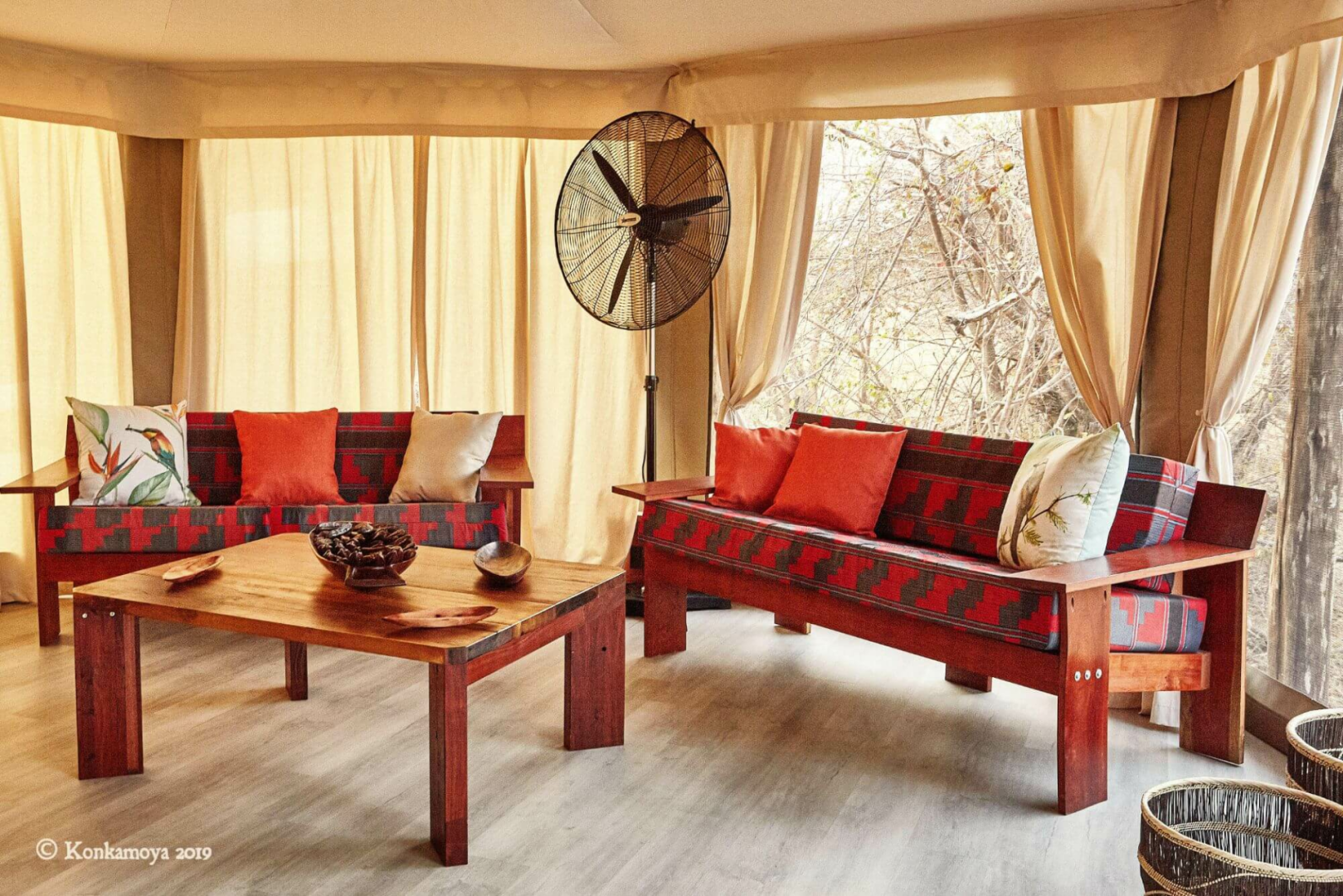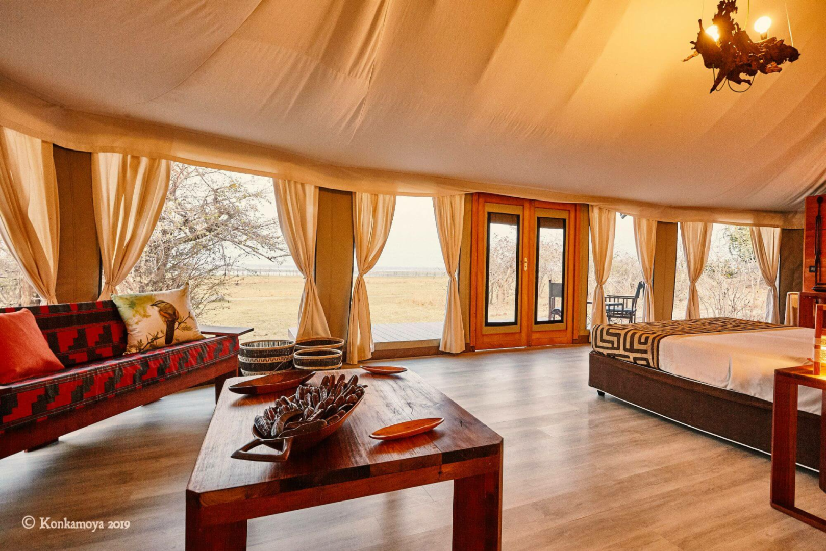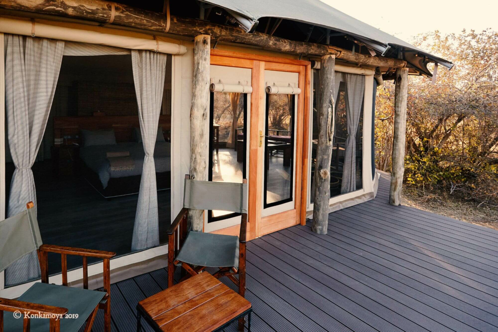 An sich ist Konkamoya eine simple Lodge mit vier vernünftig ausgestatteten und geräumigen Zelte mit der obligatorischen Veranda und dem unversperrten Blick auf den See (und auf die herrlichen Sonnenuntergänge.) Sonst werden sind die gemeinsamen Bereiche recht simpel gehalten. Fokus liegt bei Konkamoya definitiv nicht bei dem Glamping-Aspekt, sondern bei den extrem professionell durchgeführten Safari-Aktivitäten. Andrea, der italienische Manager und Besitzer, ist ein leidenschaftlicher Afrikafan und aktiver Naturschützer, mit Unmengen Wissen über die Tierwelt Kafues (er fährt seine Gäste mal auch selber auf Pirsch) und sein großes Engagement merkt man an seinem ganzen sensationell gut ausgebildeten Guides-Team an.