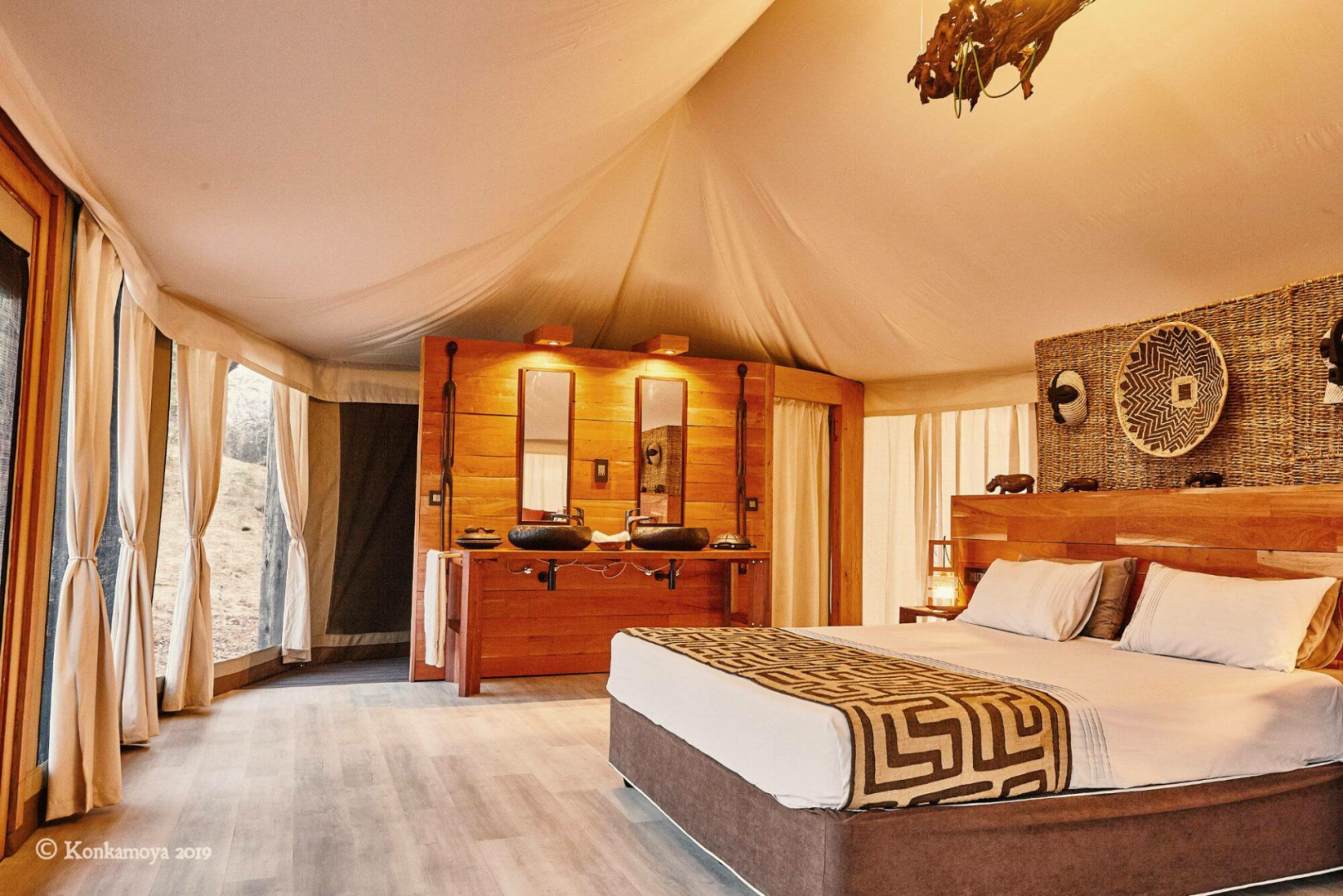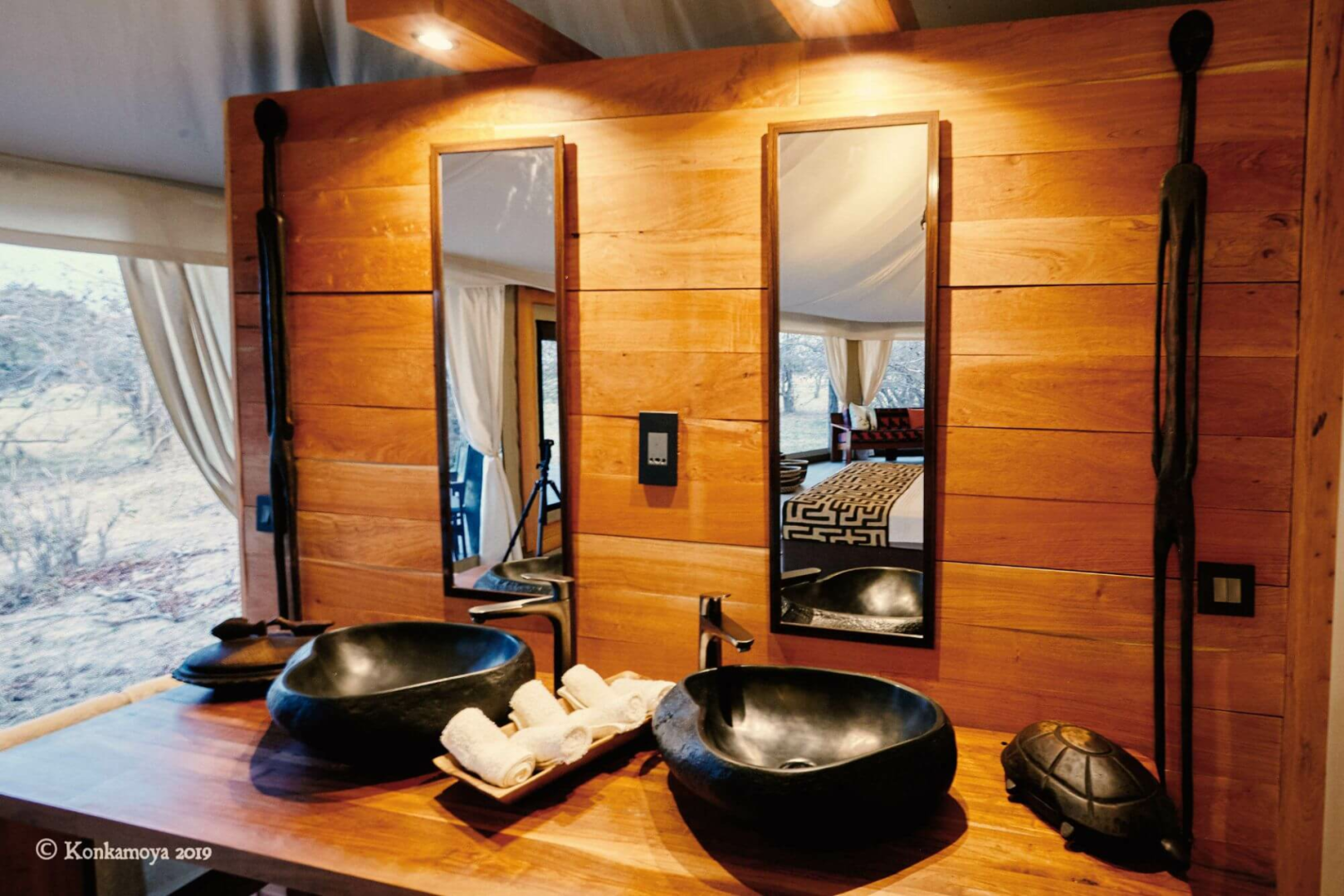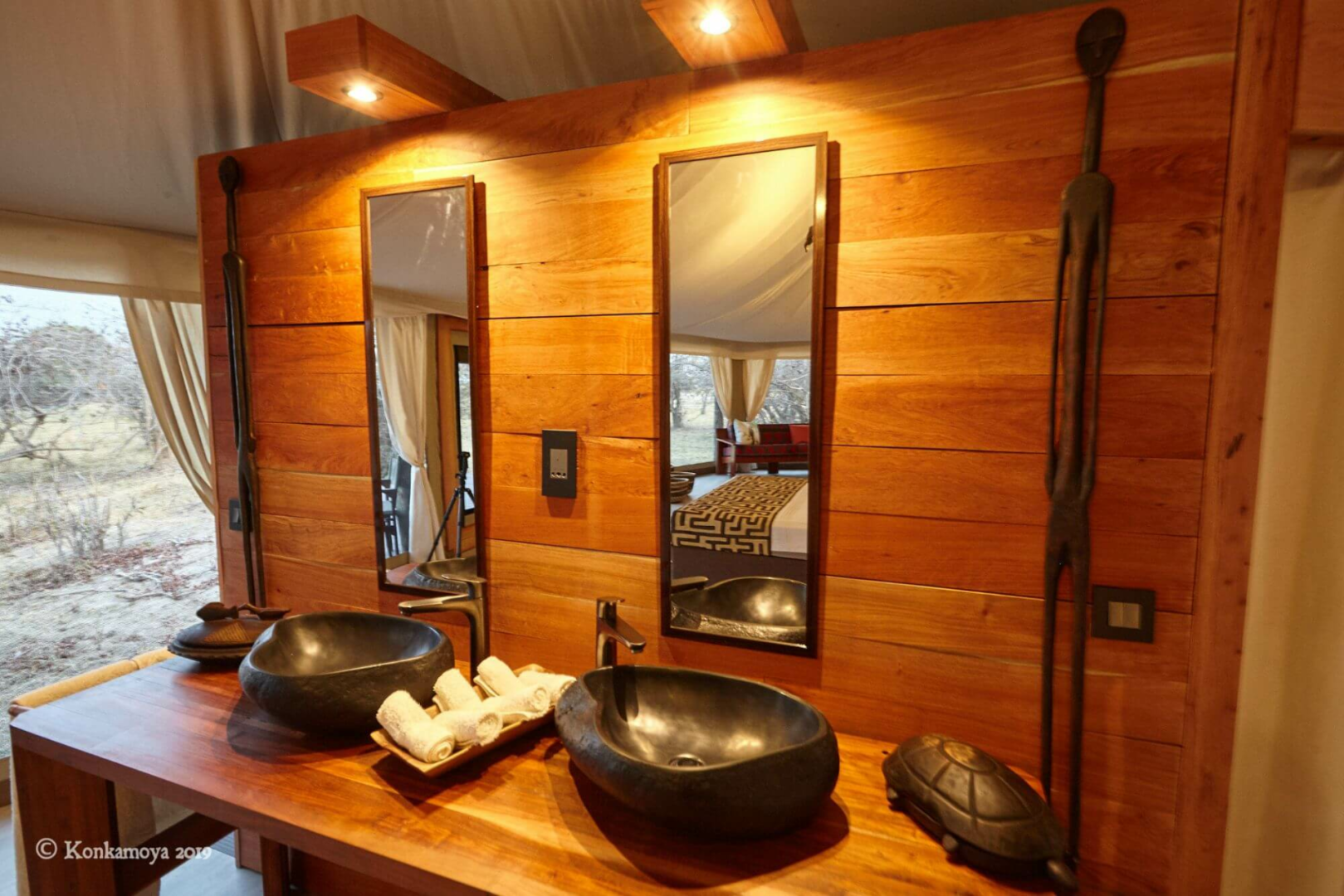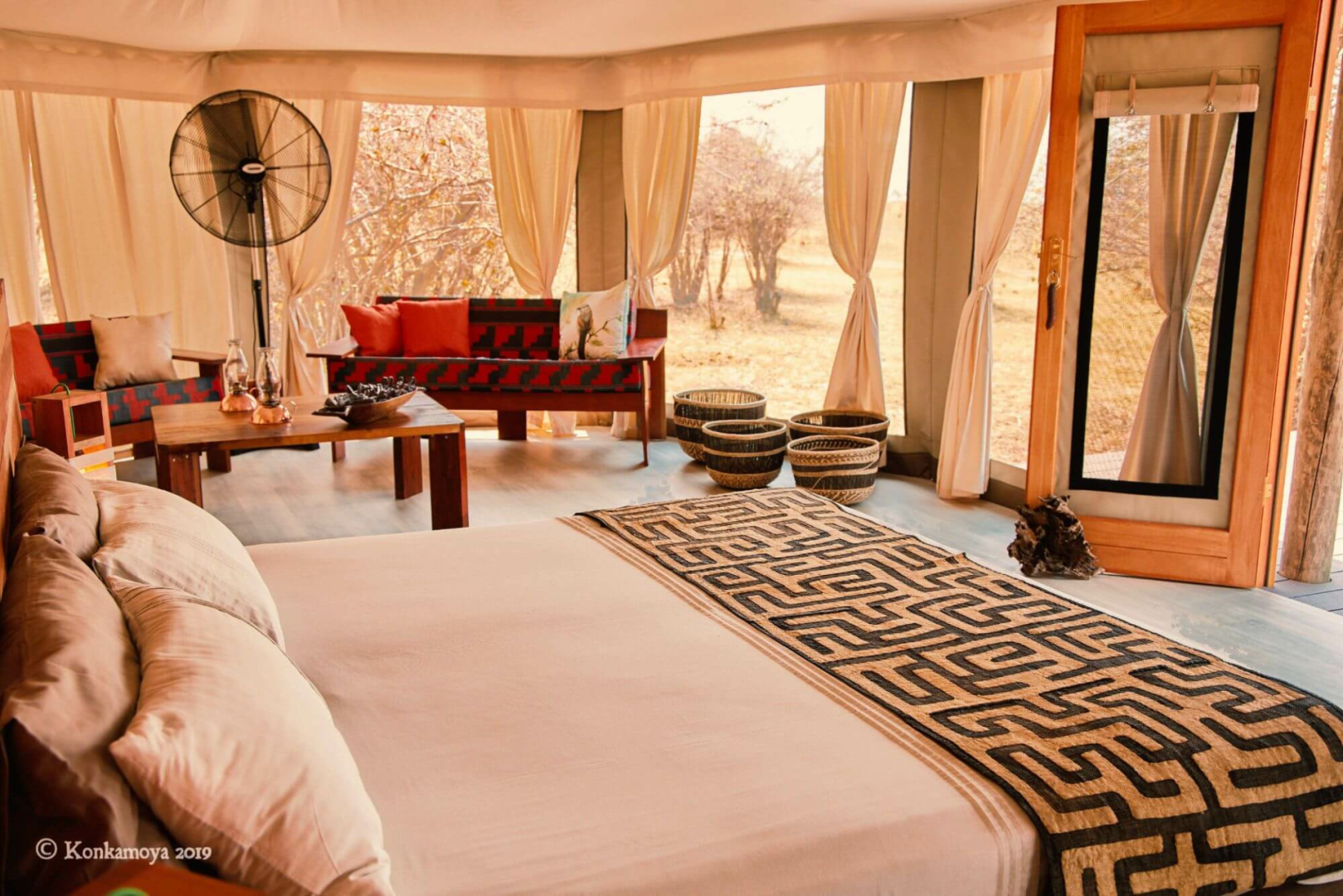 An sich ist Konkamoya eine simple Lodge mit vier vernünftig ausgestatteten und geräumigen Zelte mit der obligatorischen Veranda und dem unversperrten Blick auf den See (und auf die herrlichen Sonnenuntergänge.) Sonst werden sind die gemeinsamen Bereiche recht simpel gehalten. Fokus liegt bei Konkamoya definitiv nicht bei dem Glamping-Aspekt, sondern bei den extrem professionell durchgeführten Safari-Aktivitäten. Andrea, der italienische Manager und Besitzer, ist ein leidenschaftlicher Afrikafan und aktiver Naturschützer, mit Unmengen Wissen über die Tierwelt Kafues (er fährt seine Gäste mal auch selber auf Pirsch) und sein großes Engagement merkt man an seinem ganzen sensationell gut ausgebildeten Guides-Team an.
