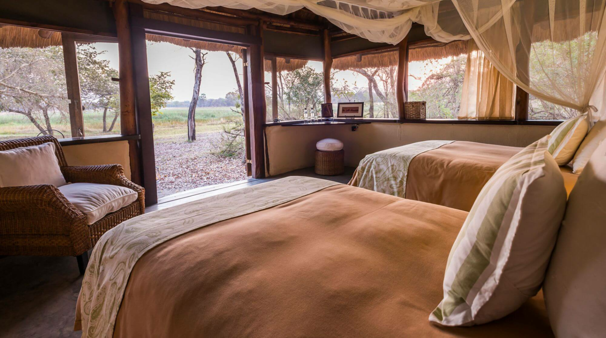 Das Nanzhila Plains Camp an sich ist ein kleines einfaches Safari-Camp aus drei Safarizelten und drei Cottages, die ausreichend eingerichtet sind, wobei die Cottages etwas besser aufgestellt sind. Uns haben die vielen kleinen Aufmerksamkeitsdetails sehr überrascht: Von der Warmflasche im Bett abends, hin zum Lippenbalsam auf dem Nachttisch: Die Liebe zum Detail ist überall spürbar. Das Camp ist eins dieser Raritäten, wo Besitzer und Manager dieselbe Person sind. Cindy und Steve sind zwei passionierte Afrikaliebhaber und ihre große Herzlichkeit schafft, dass jeder Gast sich sofort zuhause fühlt. Das Personal ist wunderbar aufmerksam und die Verpflegung sehr gut.