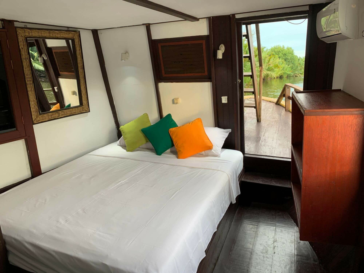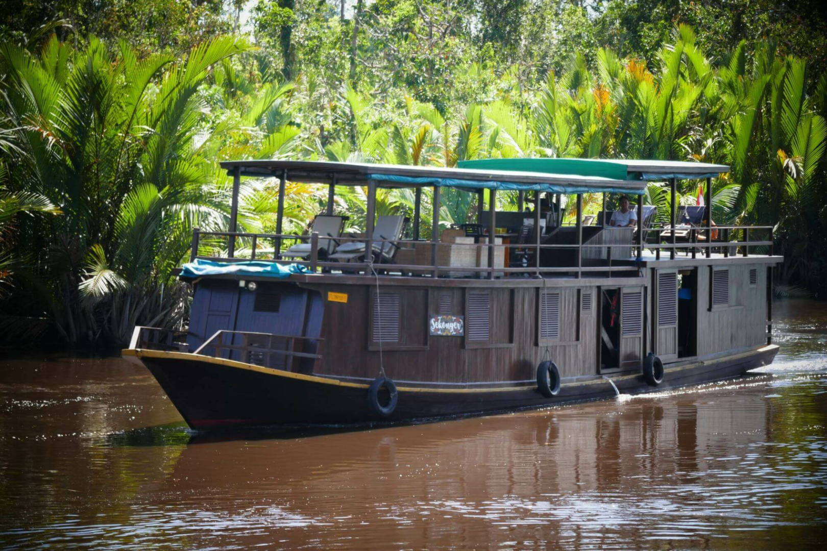 Das Sekonyer ist 18 Meter lang und 3 Meter breit großes Hausboot mit drei klimatisierten Kabinen, jede davon mit einem komfortablen Doppelbett, Privatbad und Ablagemöglichkeiten ausgestattet. Die Fenster der Kabinen sind mit Moskitonetzen und Schiebeläden ausgestattet, um die Privatsphäre zu wahren. Geschlafen wird zwar in den Kabinen, aber das Leben verbringt man draußen auf dem Aussichtsdeck, komfortabel mit Rattanmöbeln und einem Esstisch ausgestattet, wo die leckeren Hauskost-Mahlzeiten serviert werden. Wie die anderen Boote der gleichen Firma ist die Senkoyer ein gutes Boot mit gutem Service und ausgezeichneten Führern und bietet eine perfekte Möglichkeit, den Tanjung Puting Park zu erkunden.