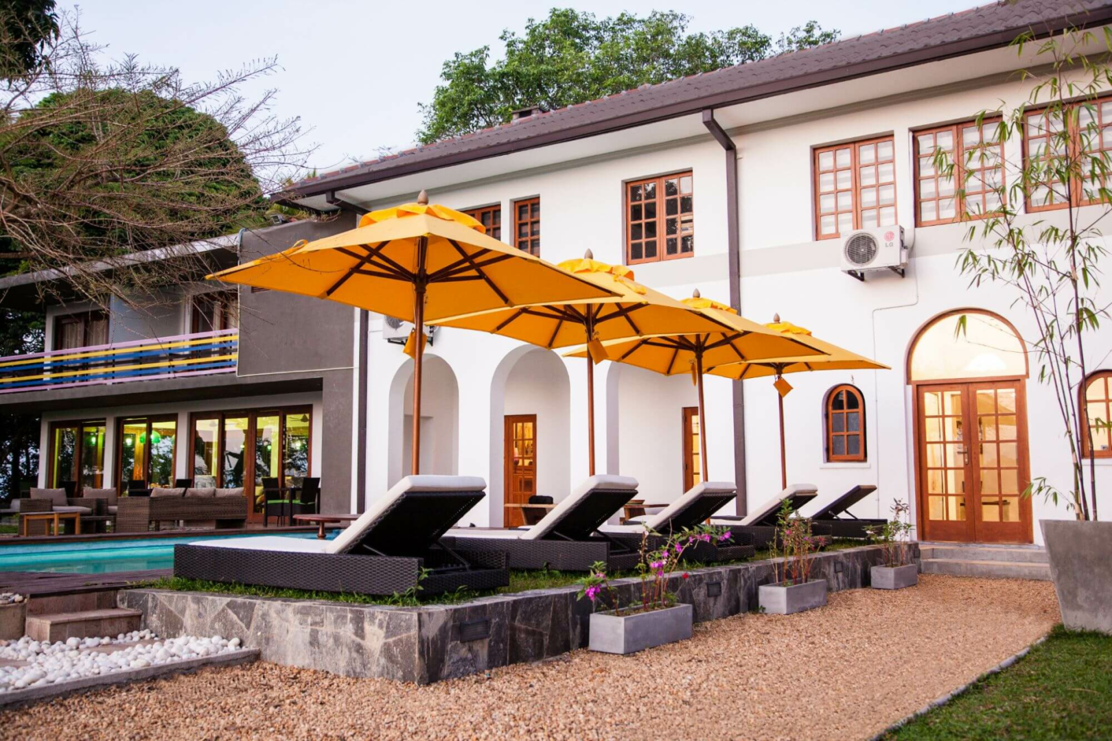 Das Anwesen ist nach den ursprünglichen Ställen benannt, in denen in den 30er Jahren die Arbeitselefanten der ursprünglichen Plantage untergebracht waren. Bitte beachtet, dass auf dem Gelände keine Elefanten mehr gehalten werden. Heutzutage wurde das Haus liebevoll restauriert und mit einer Kombination aus Originalmöbeln aus der Mitte des Jahrhunderts und schickem Interieur geschmackvoll eingerichtet.
