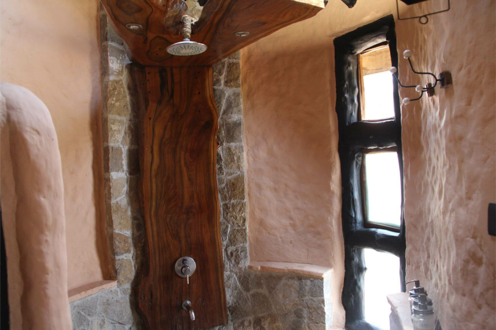 Die Gäste werden in zwölf sehr großzügigen Cottages mit privatem Deck untergebracht, alle rechts vom Haupthaus gelegen. Von hier aus geht ein Weg in den Garten, wo auch sämtliches Gemüse, welches in der Küche Verwendung findet, ökologisch angebaut wird. Tatsächlich wurde die Küche von Earth Lodge auch ökologisch zertifiziert.