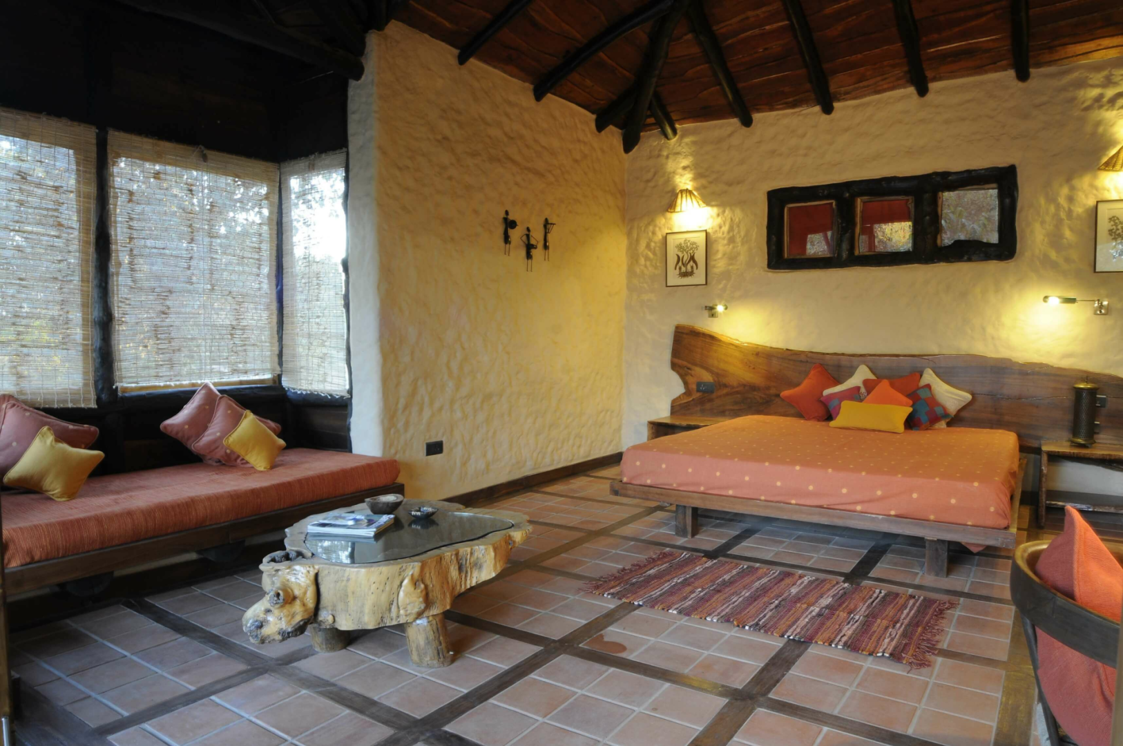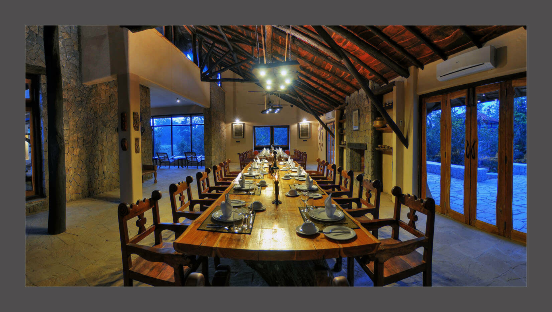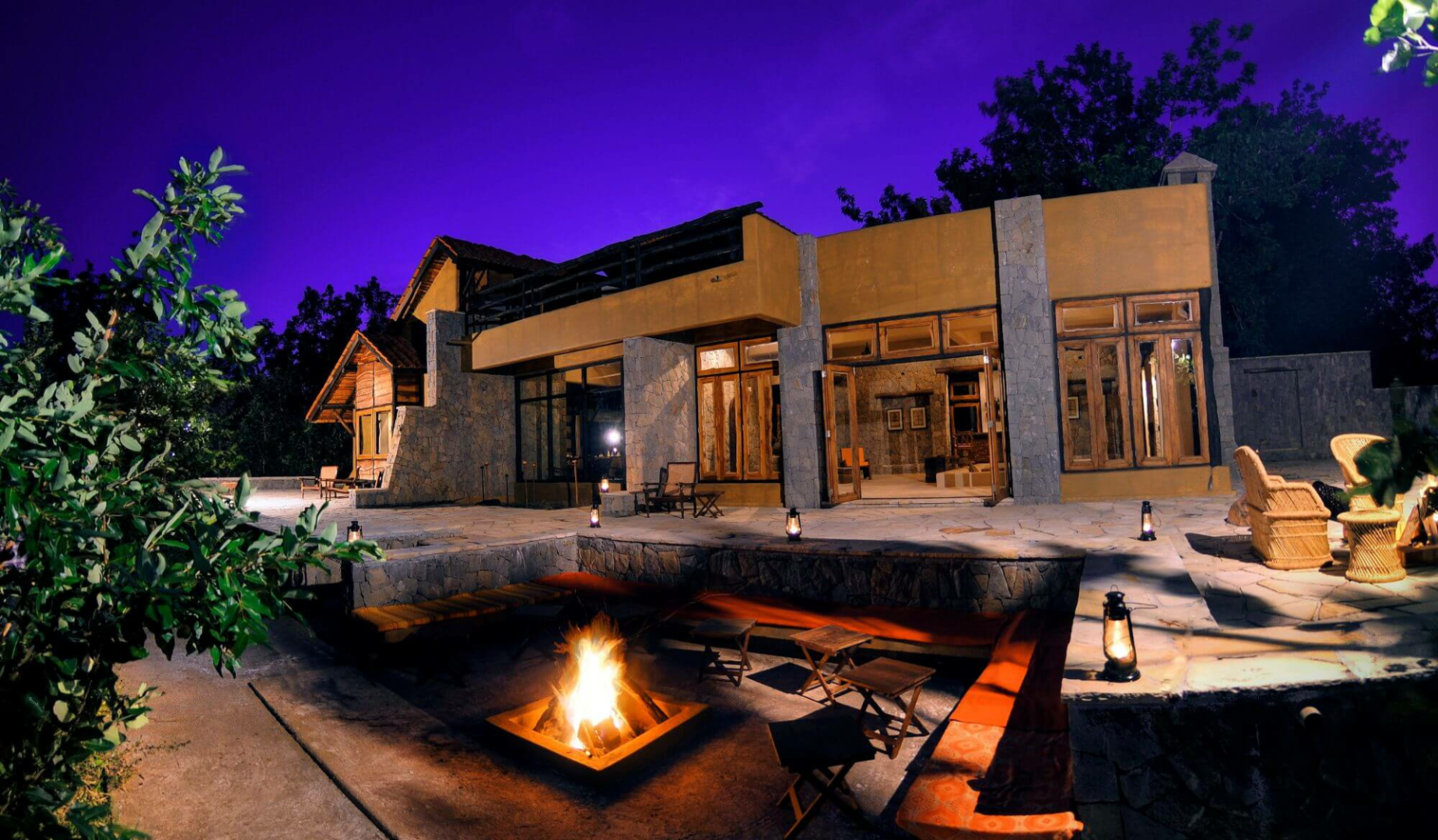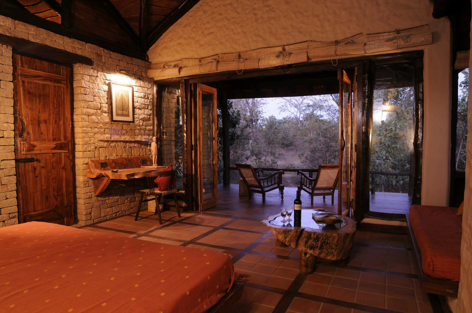 Die aus nur vier Cottages bestehende Lodge auf einem Cliff oberhalb des Flusses Flame of the Forest Safari Lodge dürfte vom Stil und Charakter her unsere Lieblingslodge in Kanha sein.