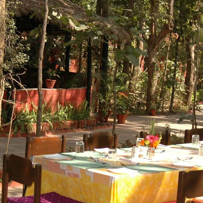 Bestes Merkmal der simpel gehaltenen Kanha Jungle Lodge nah dem Mukki-Gate um Kanha Nationalpark ist die unmittelbare Lage mitten im immergrünen Salbaum-Wald.