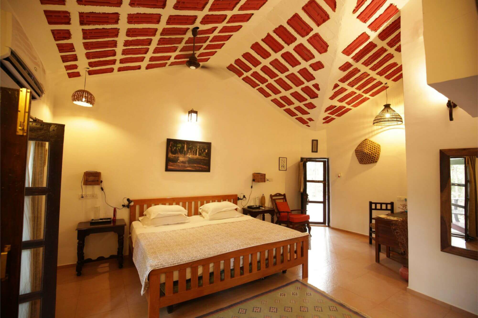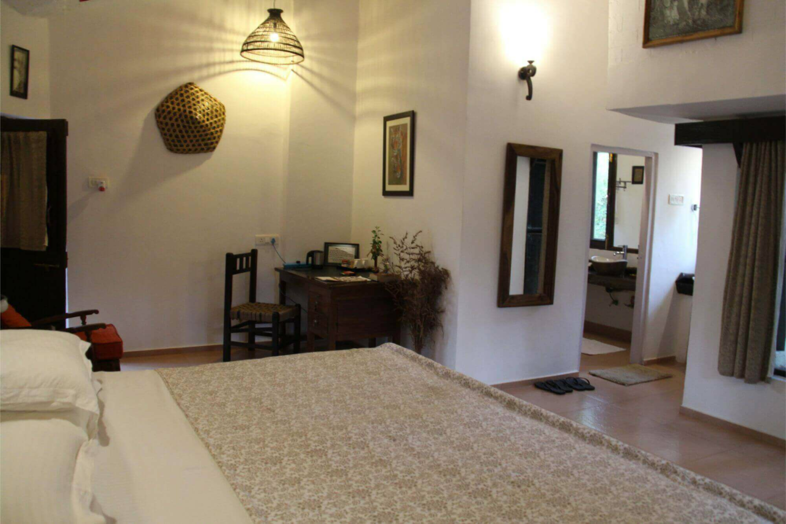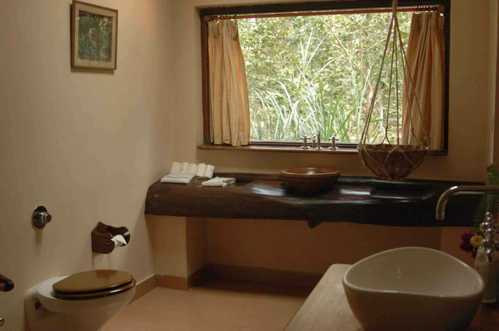Auf der positiven Seite muss man erwähnen, dass 50 % des Personals weiblich ist. Selbst die Managerin ist eine Frau und professionelle Köchin. Die Kundschaft ist gemischt, aber überwiegend indisch. Die Lage inmitten des Waldes direkt angrenzend zum Nationalpark ist natürlich von großem Vorteil. Auch wenn man keine Versprechungen zu einer tatsächlichen Begegnung machen soll, passieren Leoparden und sogar Tigersichtungen hier tatsächlich.