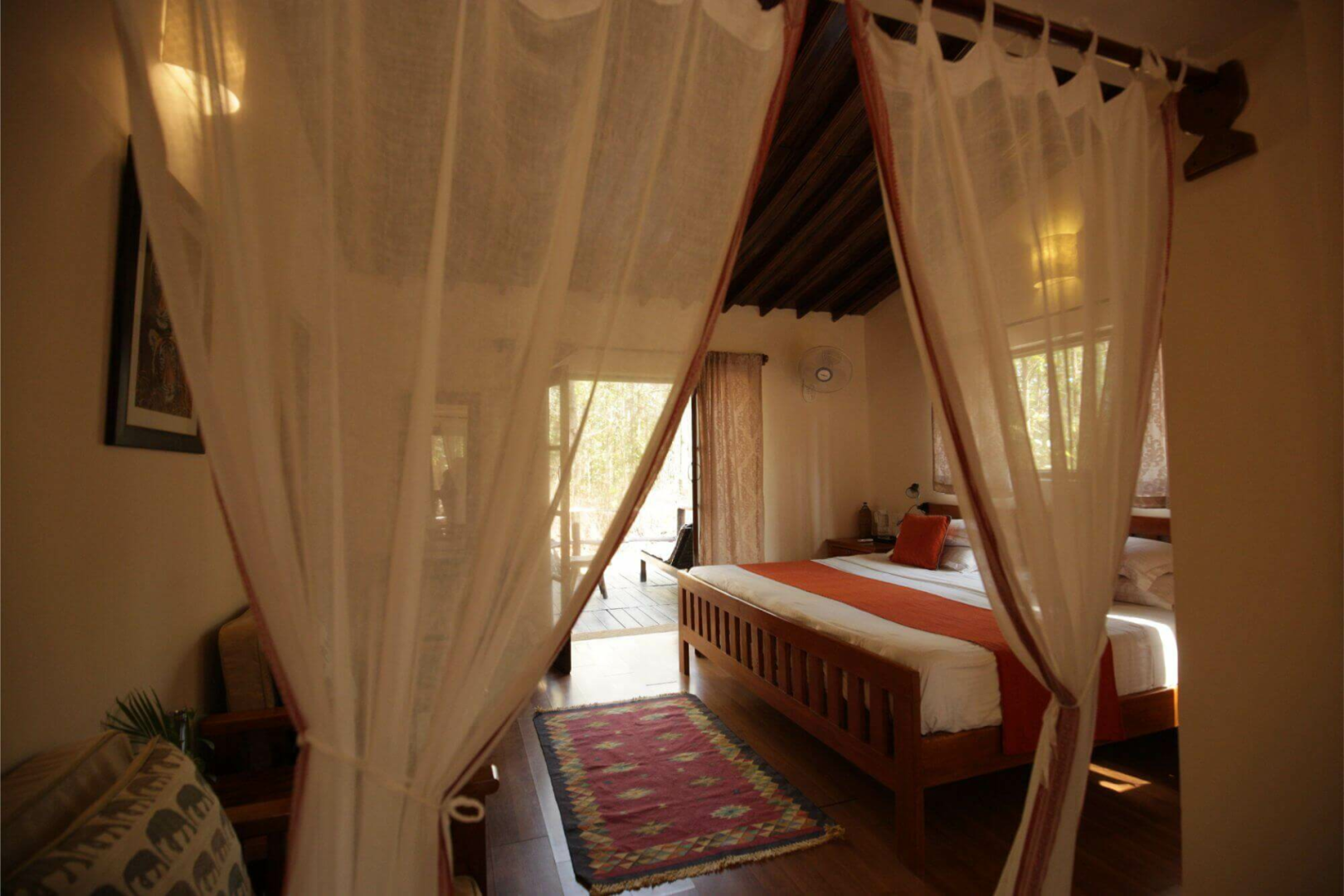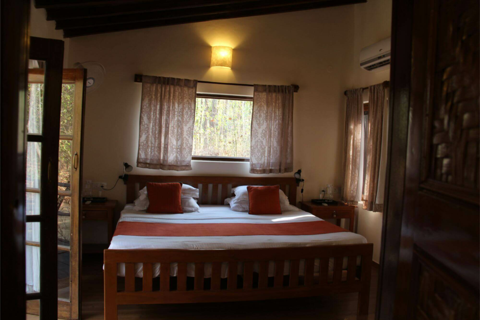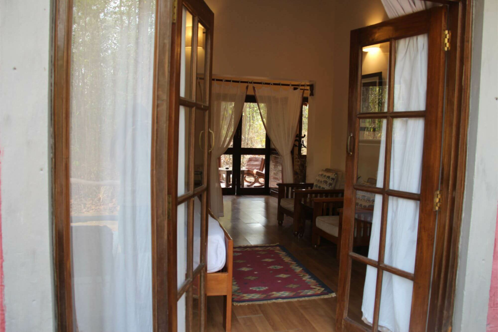 Die aus nur vier Cottages bestehende Lodge auf einem Cliff oberhalb des Flusses Flame of the Forest Safari Lodge dürfte vom Stil und Charakter her unsere Lieblingslodge in Kanha sein.