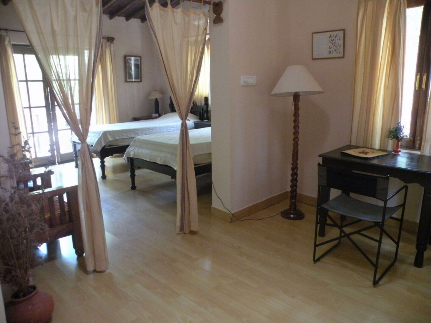 Die Zimmer haben zwei unterschiedliche Kategorien, etwas ältere Standardzimmer und neuere Deluxe-Zimmer, allesamt in mehreren Reihenhäusern rechts vom Restaurant untergebracht. Von beiden bieten die Standardzimmer, welche sich in Größe oder Charakter (lediglich ein wenig in der Instandhaltung) von den Deluxezimmern nicht im Geringsten unterscheiden, vielleicht das beste Preis- und Leistungsverhältnis. Mit dem großzügigen Schnitt, den hohen Decken und dem rustikalen Charme sind sie eine gute Wahl. Im hinteren Bereich jedes Zimmers öffnet sich eine Tür zu einem kleinen Balkon, von dem aus man leider keine Privatsphäre hat, wenn das Zimmer nebenan belegt ist.