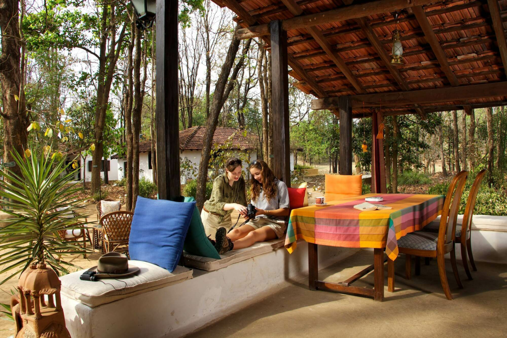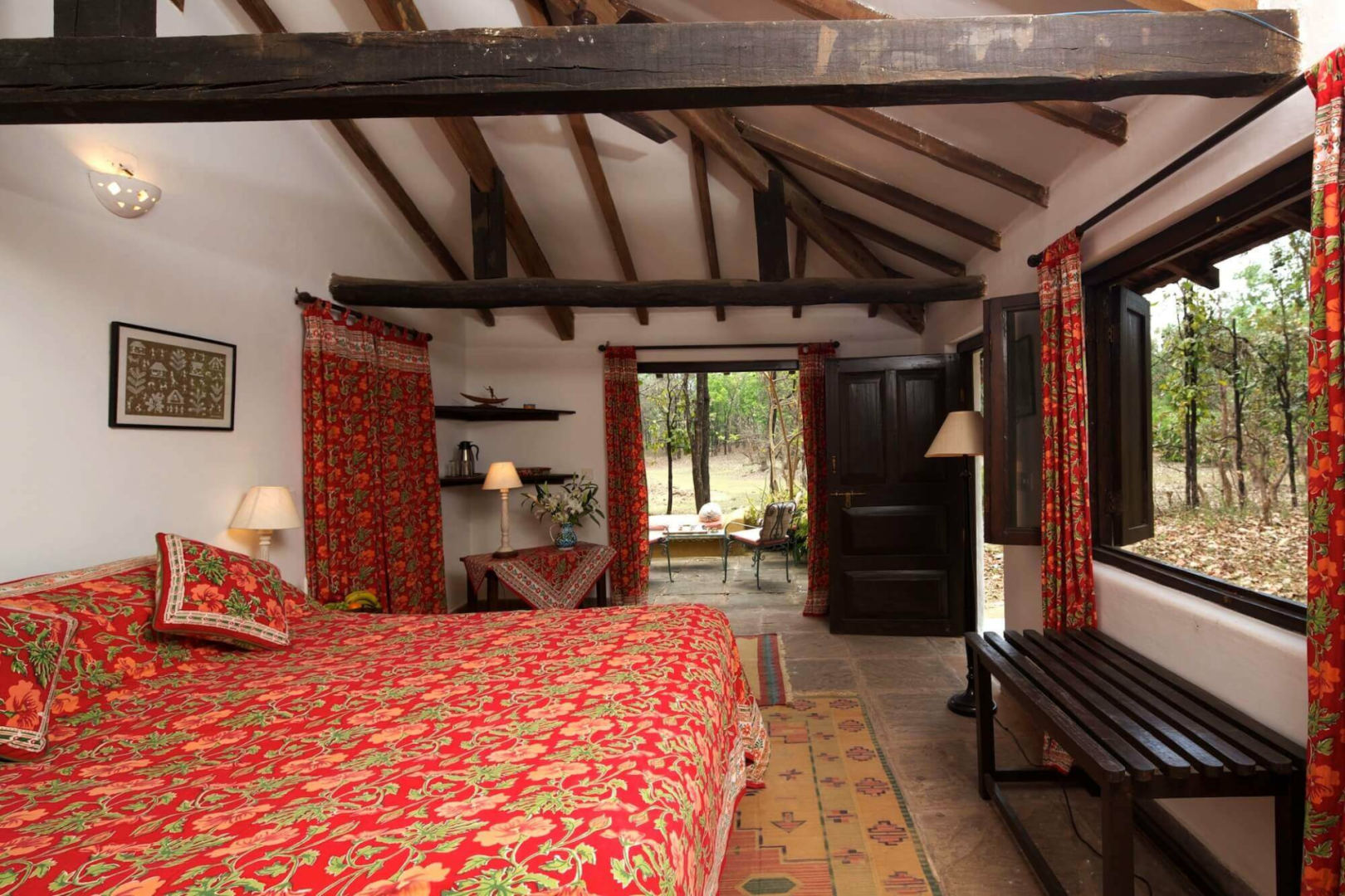 Die aus nur vier Cottages bestehende Lodge auf einem Cliff oberhalb des Flusses Flame of the Forest Safari Lodge dürfte vom Stil und Charakter her unsere Lieblingslodge in Kanha sein.
