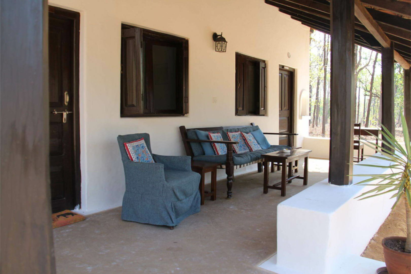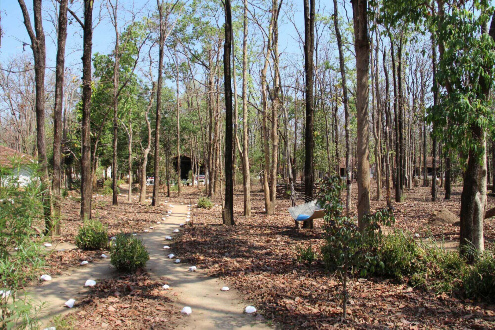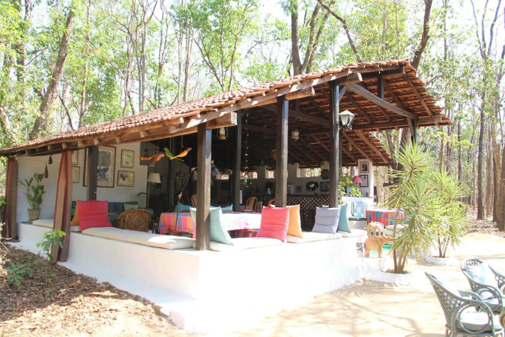 Bestes Merkmal der simpel gehaltenen Kanha Jungle Lodge nah dem Mukki-Gate um Kanha Nationalpark ist die unmittelbare Lage mitten im immergrünen Salbaum-Wald.