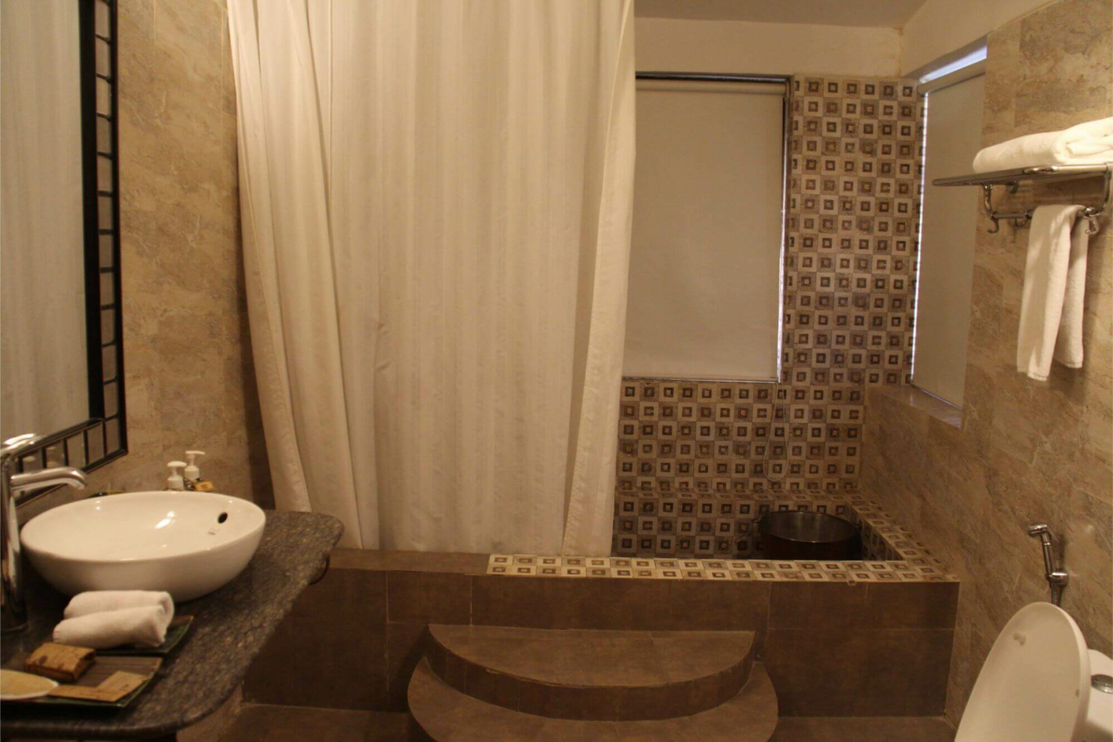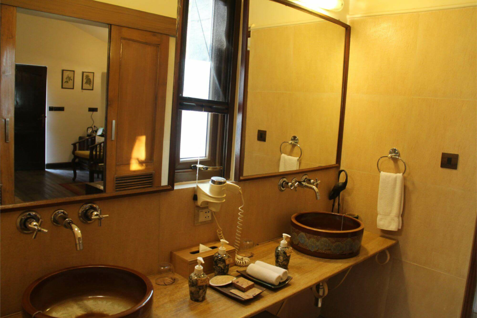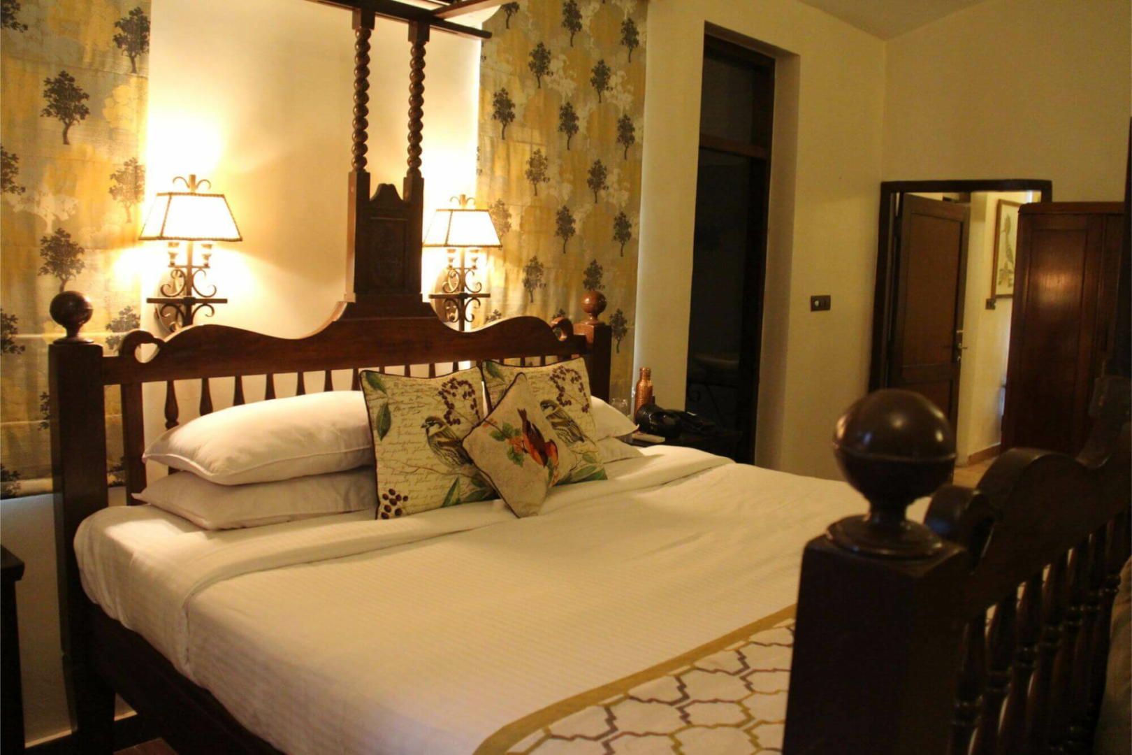 Zu den zwölf Cottages hinzu kommt ein großes ländliches Haus, in Indien als Bungalow bezeichnet, wo vier Zimmer plus Ess- und Wohnzimmer an Familien und geschlossene Gesellschaften vermietet werden können. Der Zustand des Gebäudes lässt allerdings hinsichtlich der sehr gehobenen Preislage viel zu wünschen übrig.