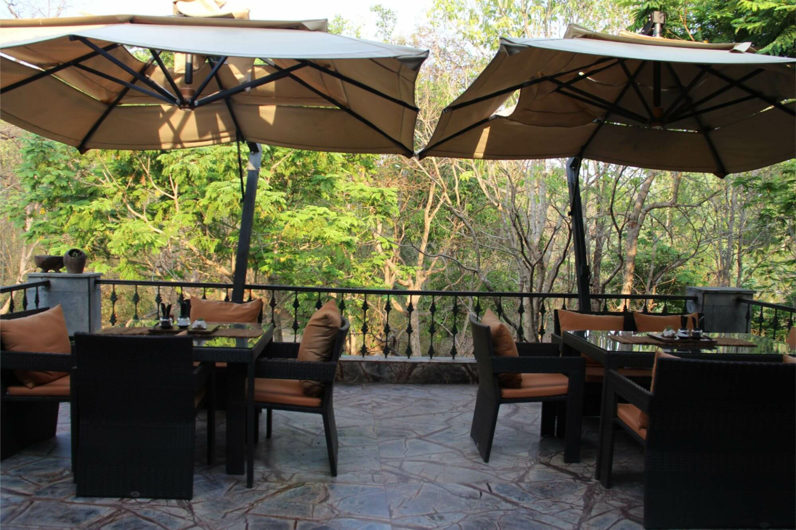 Die aus nur vier Cottages bestehende Lodge auf einem Cliff oberhalb des Flusses Flame of the Forest Safari Lodge dürfte vom Stil und Charakter her unsere Lieblingslodge in Kanha sein.