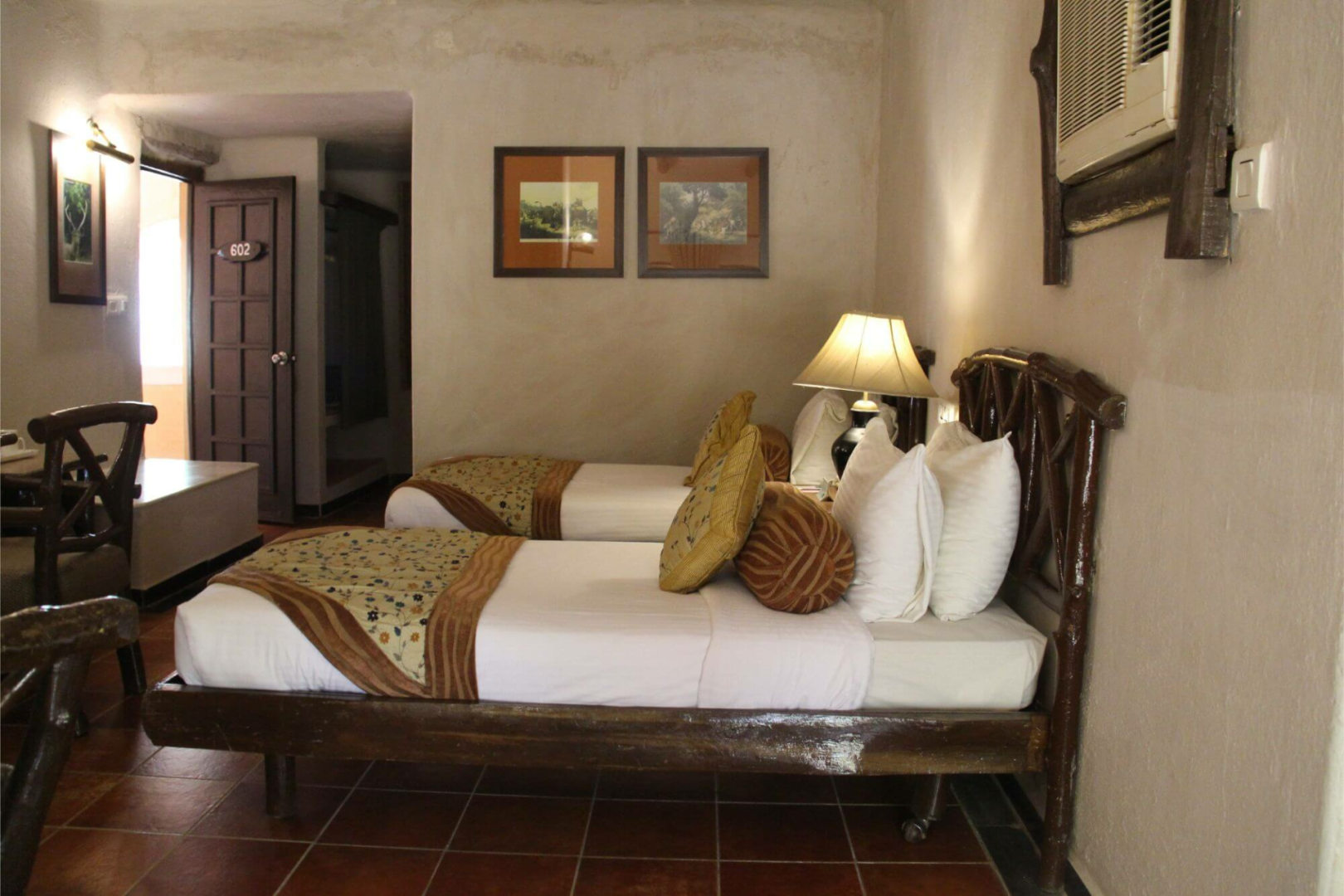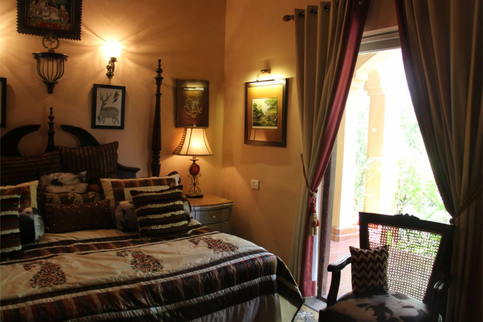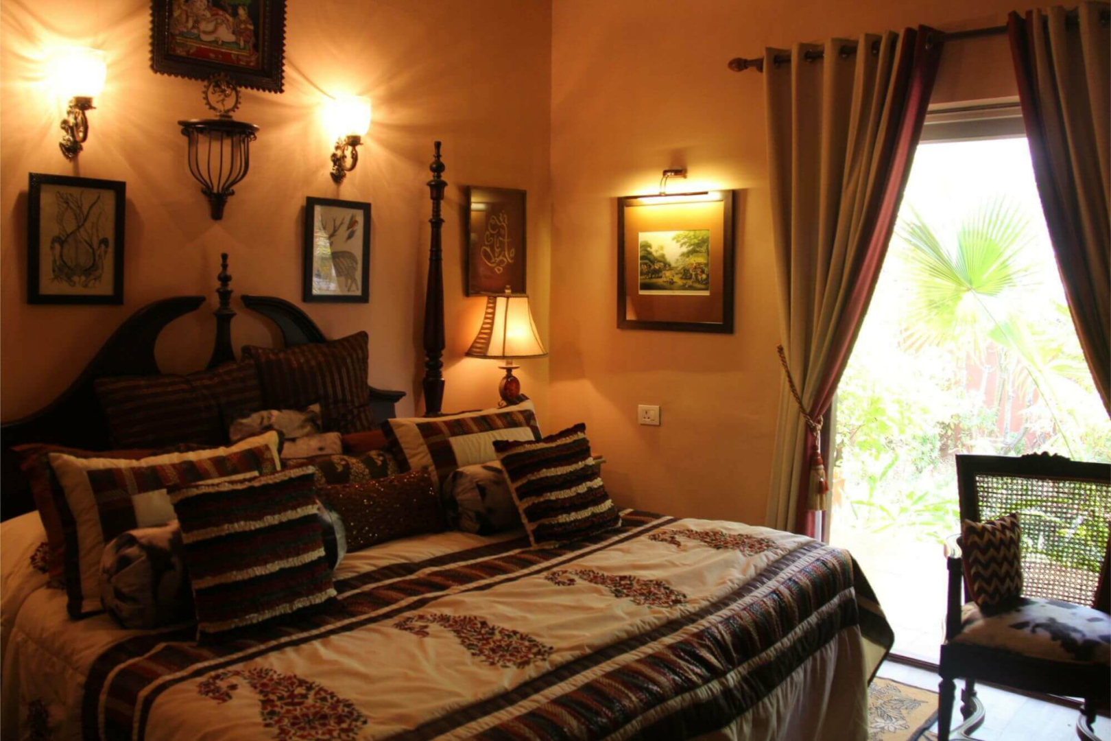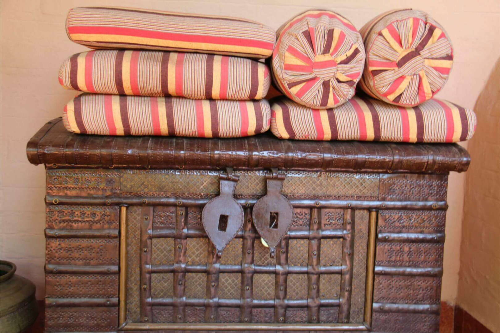 Die Zimmer befinden sich in einzeln stehenden Cottages, welche im Halbmondkreis um den Teich angeordnet sind. Seitlich von der Tür liegt ein gemütlich gestalteter Loungebereich mit von farbigen Kissen bezogenen Banken und einem kleinen Kamin. Im Inneren der Cottages befinden sich das dezent eingerichtete Schlafzimmer und das Badezimmer, letztere könnten modernisiert werden. Vielleicht aufgrund des rosa gestrichenen Lehms, welcher für den Bau genutzt wurde, hat man das Gefühl, in einer Höhle zu sein. Ein großer Swimmingpool ist auch vorhanden.