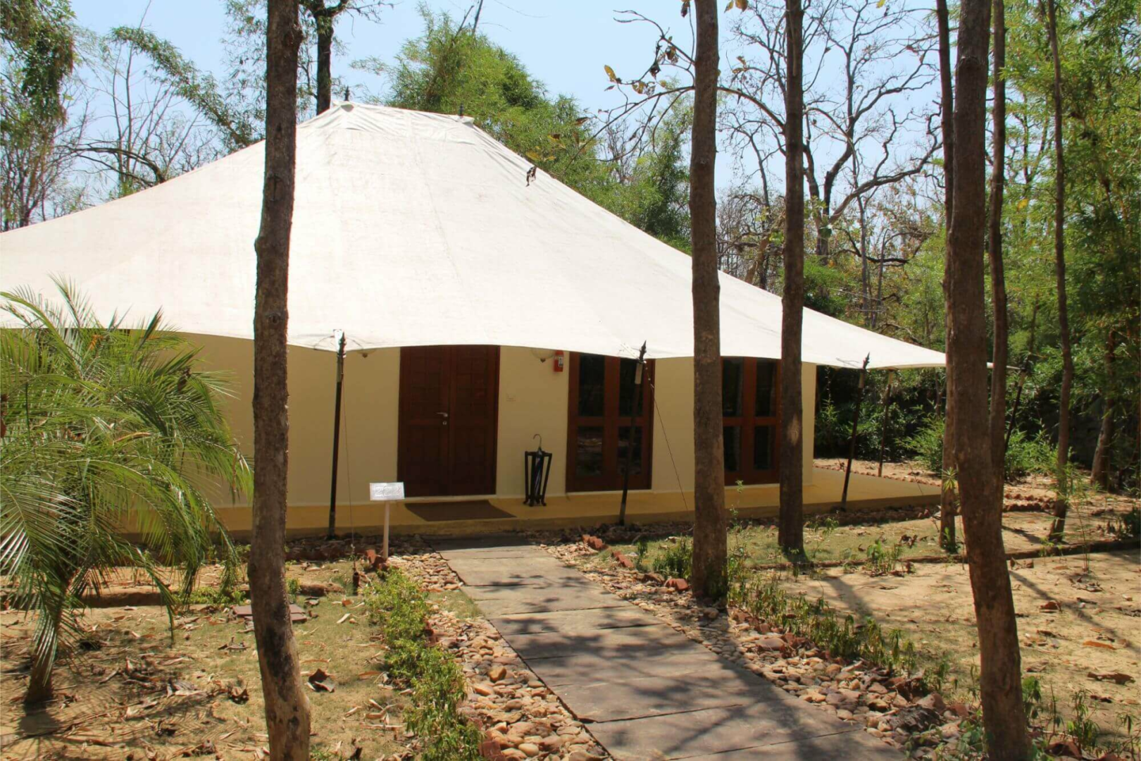 Die Pugdundee Gruppe unterhält ökologisch orientierte Dschungel-Lodges in allen bekannten Parks Zentralindiens. Hier darf Kanha natürlich nicht fehlen. Die Kanha Earth Lodge liegt ca. 30 Minuten von Katia Gate entfernt. Hier übernachtende Gäste sollten daher etwas zeitiger aufbrechen...