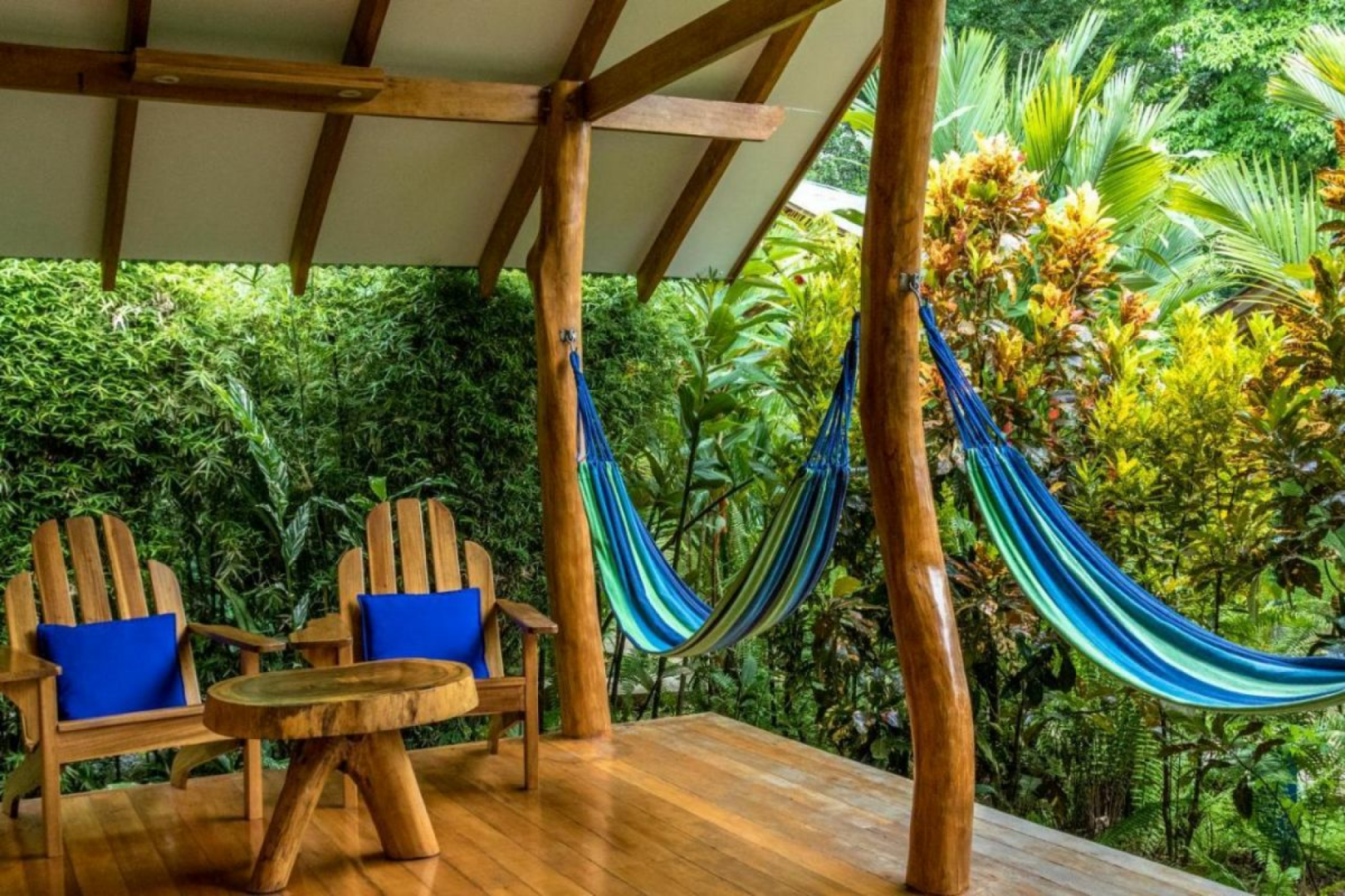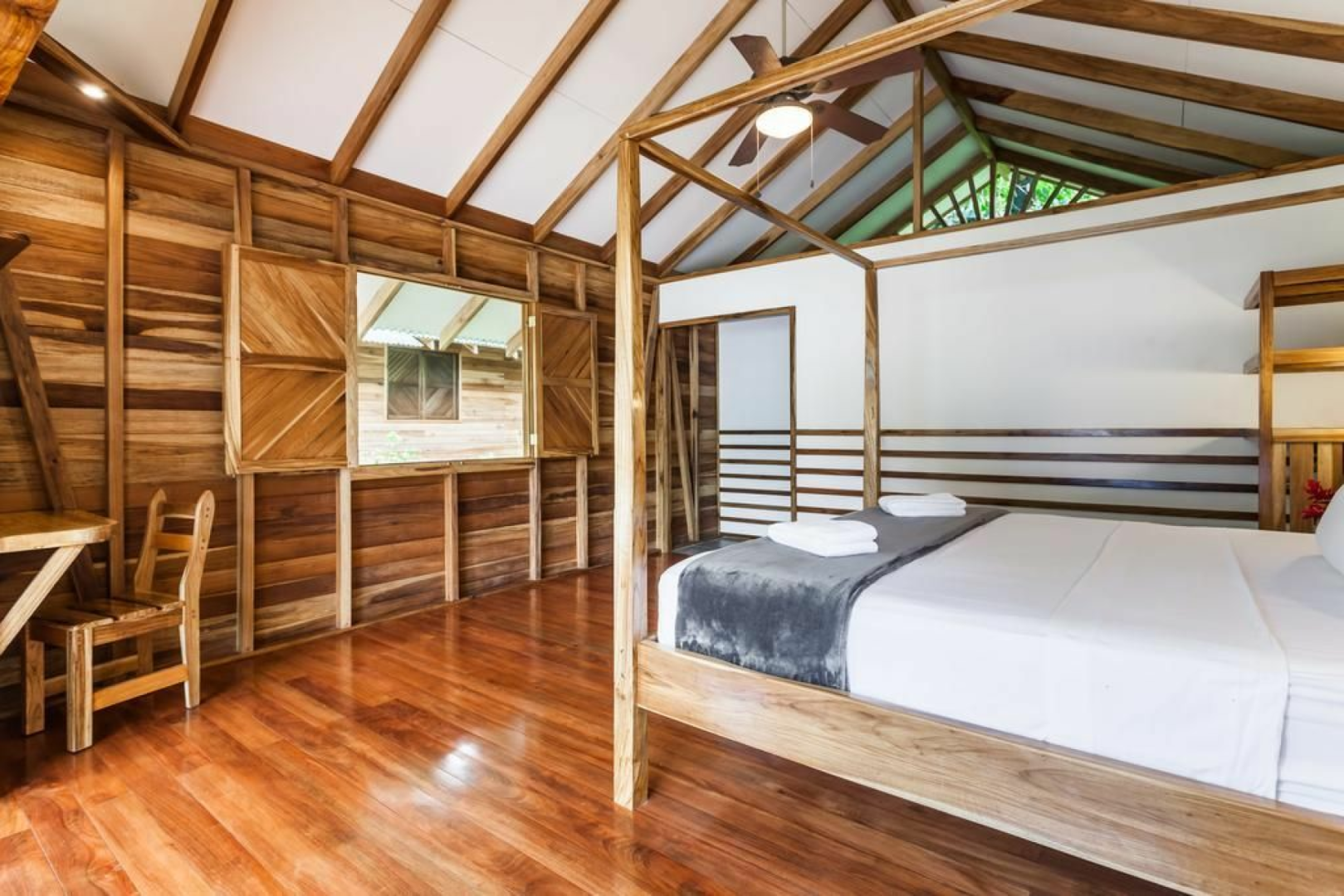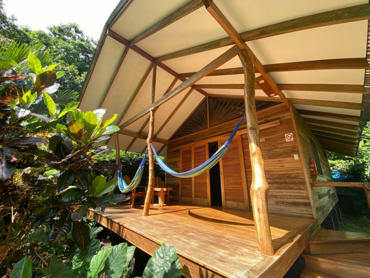 Die Chalets bestehen zu 100 % aus Holz, sind offen und geräumig und verfügen über ein großes Bett, Schränke, einen Kühlschrank und einen Ventilator (die Lodge ist umweltfreundlich und verzichtet daher auf den Einsatz von einer Klimaanlage, dennoch wirst du sie nicht vermissen). Jedes Chalet verfügt über eine große Veranda mit Hängematten.