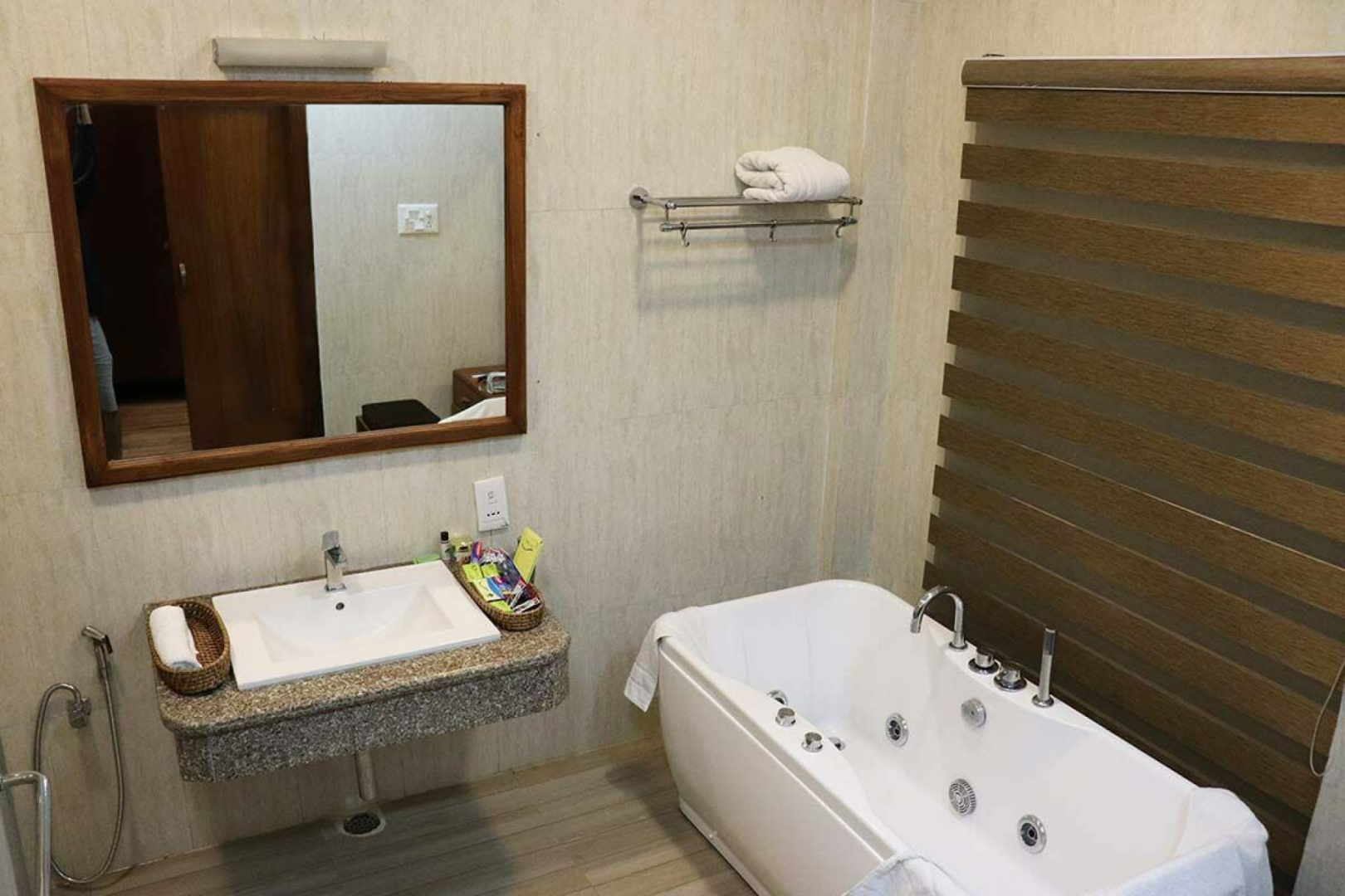 Eigentlich ein nettes, neues Resort der Infinity-Hotelgruppe, eingebettet inmitten eines schön angelegten Gartens. Die Unterkunft erfolgt in 16 ziemlich schönen Bungalows gebaut im Stil der traditionellen Assam-Architektur.