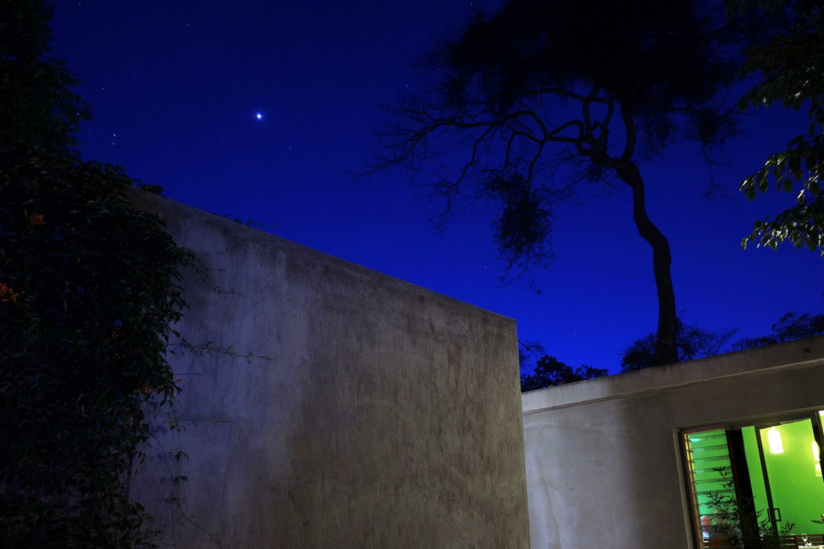 Zwischen dem Berg und der Lodge befindet sich ein tiefer Graben mit einem hörbaren Bach, der durch den dichten Dschungel fließt und von dem man nur ein geringes Rauschen wahrnimmt. Der üppige Dschungel und die benachbarten Kaffeeplantagen ziehen eine Vielzahl von Vögeln an, und wir sahen Flamingos über den Himmel ziehen und wurden beim Frühstück Zeuge, wie eine Familie verspielter blauer Affen im Garten neben uns fraß.