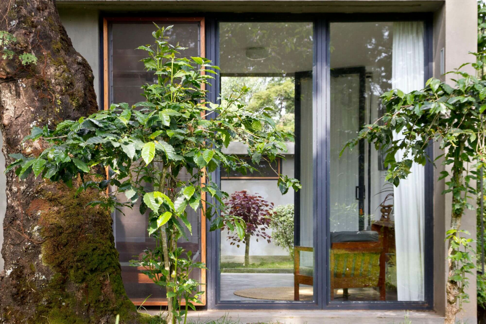 Die Kaliwa Lodge ist eine seltsame deutsche Kreation, inspiriert vom architektonischen Design der Bauhaus-Architektur, inmitten der üppig grünen Bananen- und Kaffeeplantagen am Westhang des Kilimmanjaro bei Machame, der sich wie ein schlafender Riese direkt vor der Lodge erhebt.