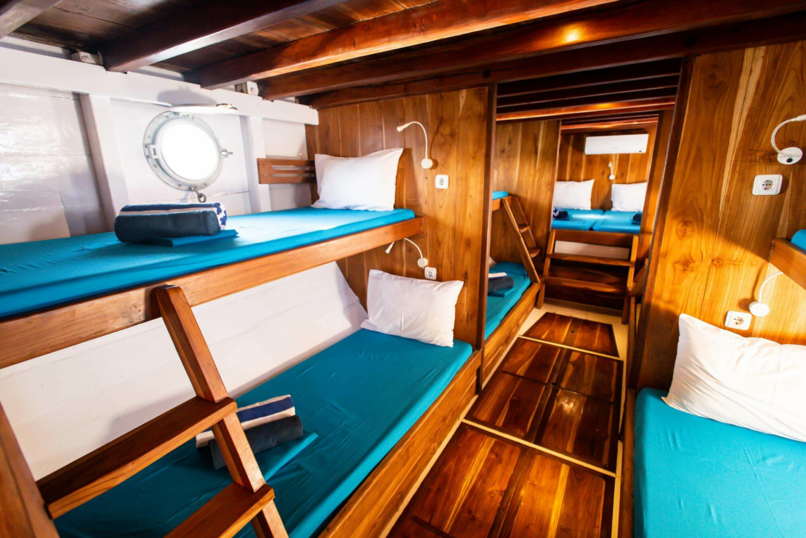 Das klimatisierte Boot bietet Platz für 8 Gäste in Etagenbetten und einer halbprivaten Kabine.