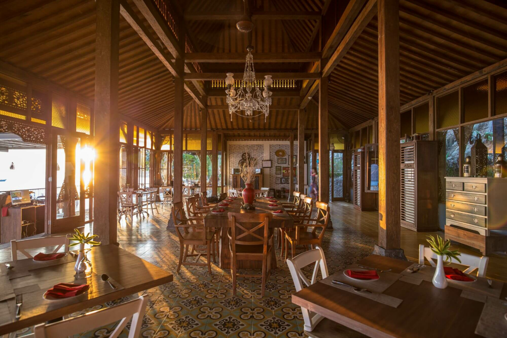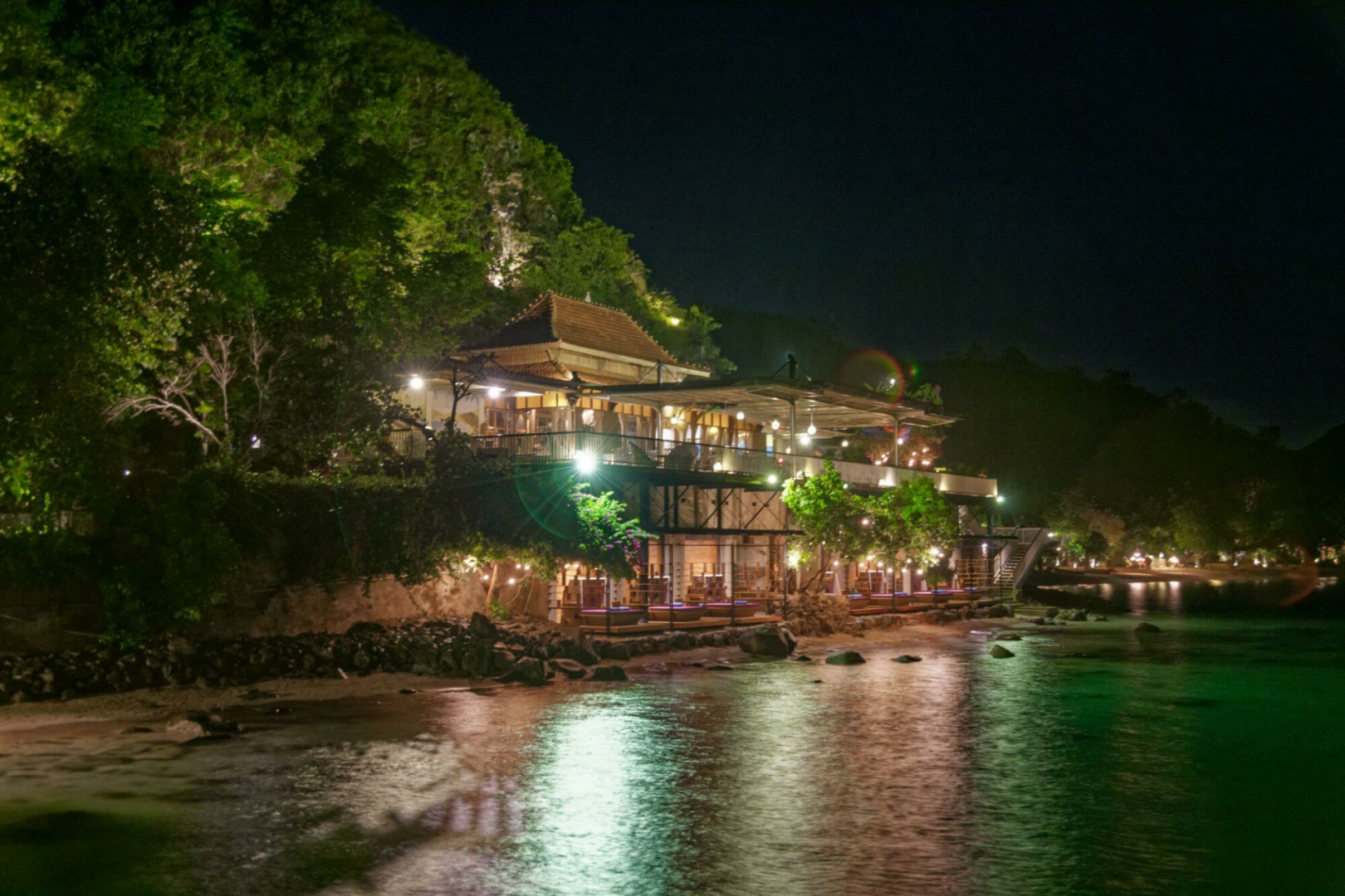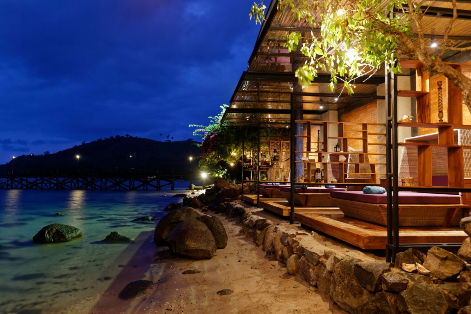 Zunächst einmal ist die Lage des Hotels sensationell. Es liegt am wunderschönen Waecicu Beach auf der Insel Flores, nicht weit von der Hauptstadt Labuan Bajo entfernt, und bietet einen atemberaubenden Blick auf das Floresmeer und seine Unterwasserwelt. Das Plataran Komodo Resort ist auch sehr klein (nur 18 Zimmer), was seinen Charme noch verstärkt. Die Anlage ist sehr gut ausgestattet und verfügt über einen Fitnessraum, einen Swimmingpool, ein Restaurant und zwei Bars, in denen man den Sonnenuntergang genießen kann. Auch das Essen ist von hoher Qualität.