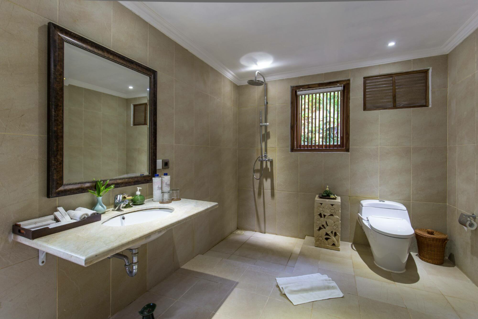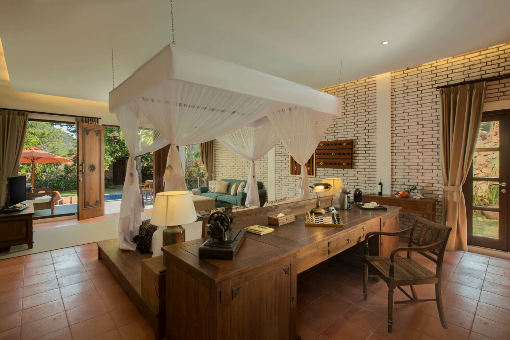 Selbst die einfachsten Villen sind luxuriös genug. Die Zimmer sind riesig und mit allen Annehmlichkeiten ausgestattet, die man nur brauchen kann. Das Bett ist sehr bequem, und die oberen Zimmerkategorien haben sogar zwei Badewannen und eine Indoor- und eine Outdoor-Dusche und manche sogar einen privaten Pool.