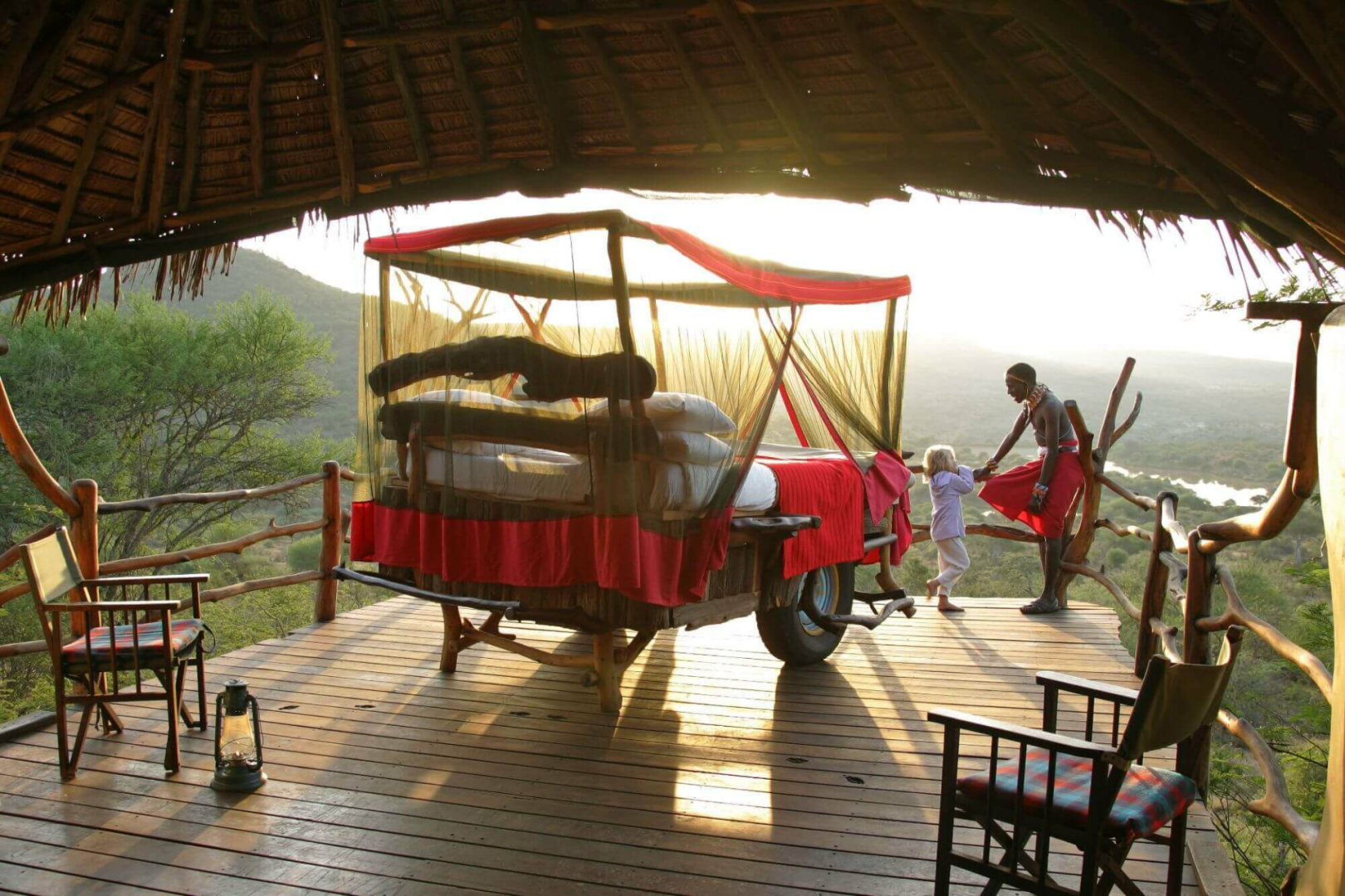 Das originelle Loisaba Starbeds Camp liegt in der tierarmen Loisaba Conservancy am Ufer des Ewaso Njiro Rivers im Norden Laikipias. Es handelt sich dabei um ein super kleines, rustikales Camp mit nur drei Zimmern, größte Attraktion hier sind die Betten, die man herausrollen kann.