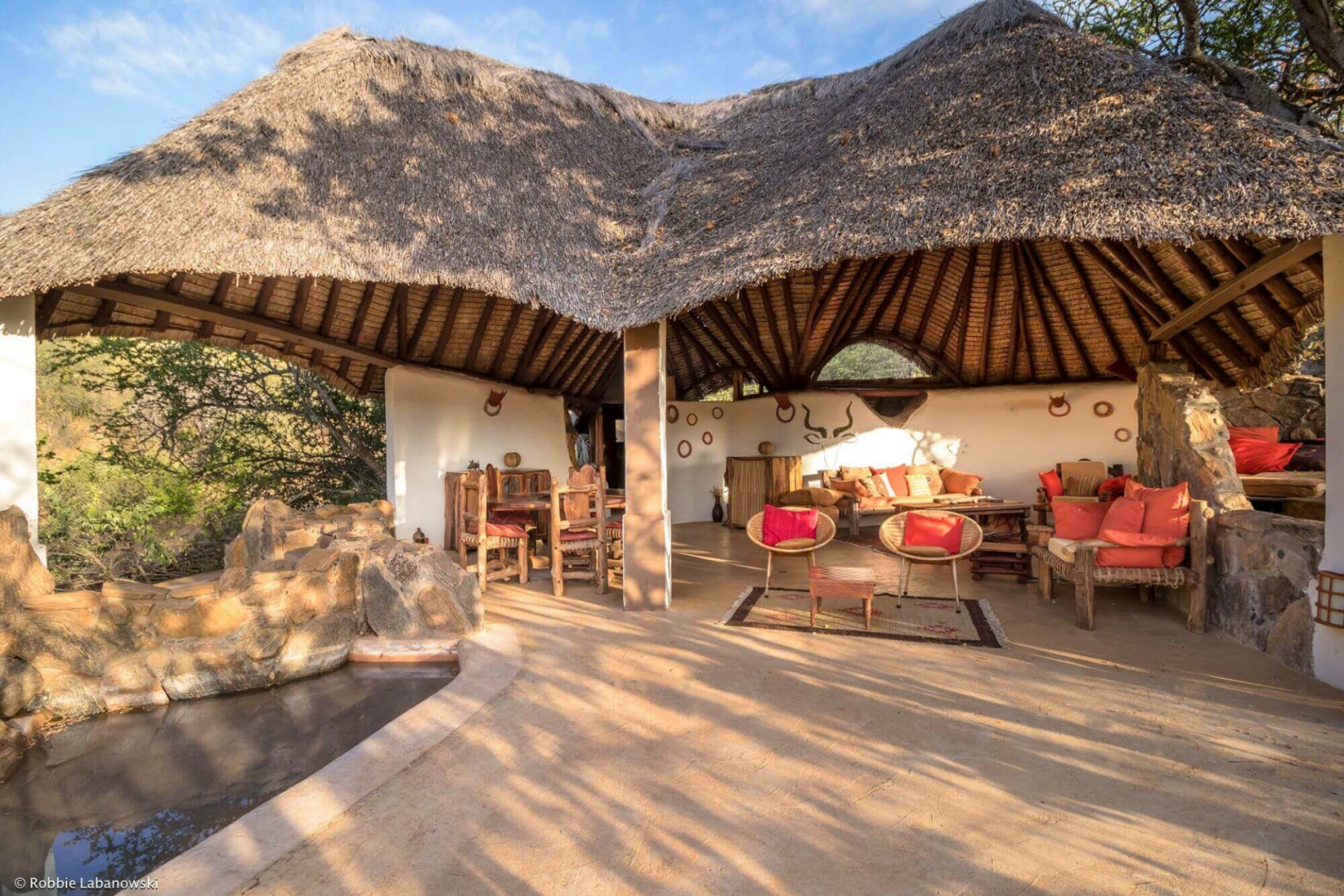 Vor den gemeinsamen Bereichen gibt es zwei große Terrassen mit Blick auf den Ewaso Nyiro Fluss, an dessen Ufer sich manchmal Elefantenherden ansammeln. Es gibt auch einen kleinen Infinitypool, der sich nördlich des Hauptbereichs befindet.