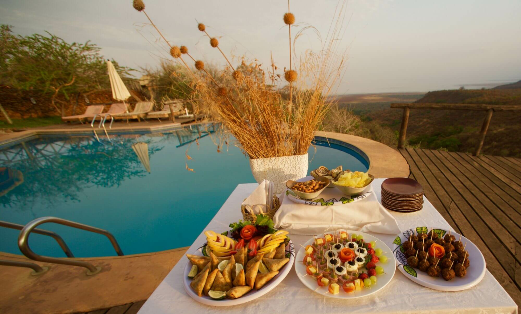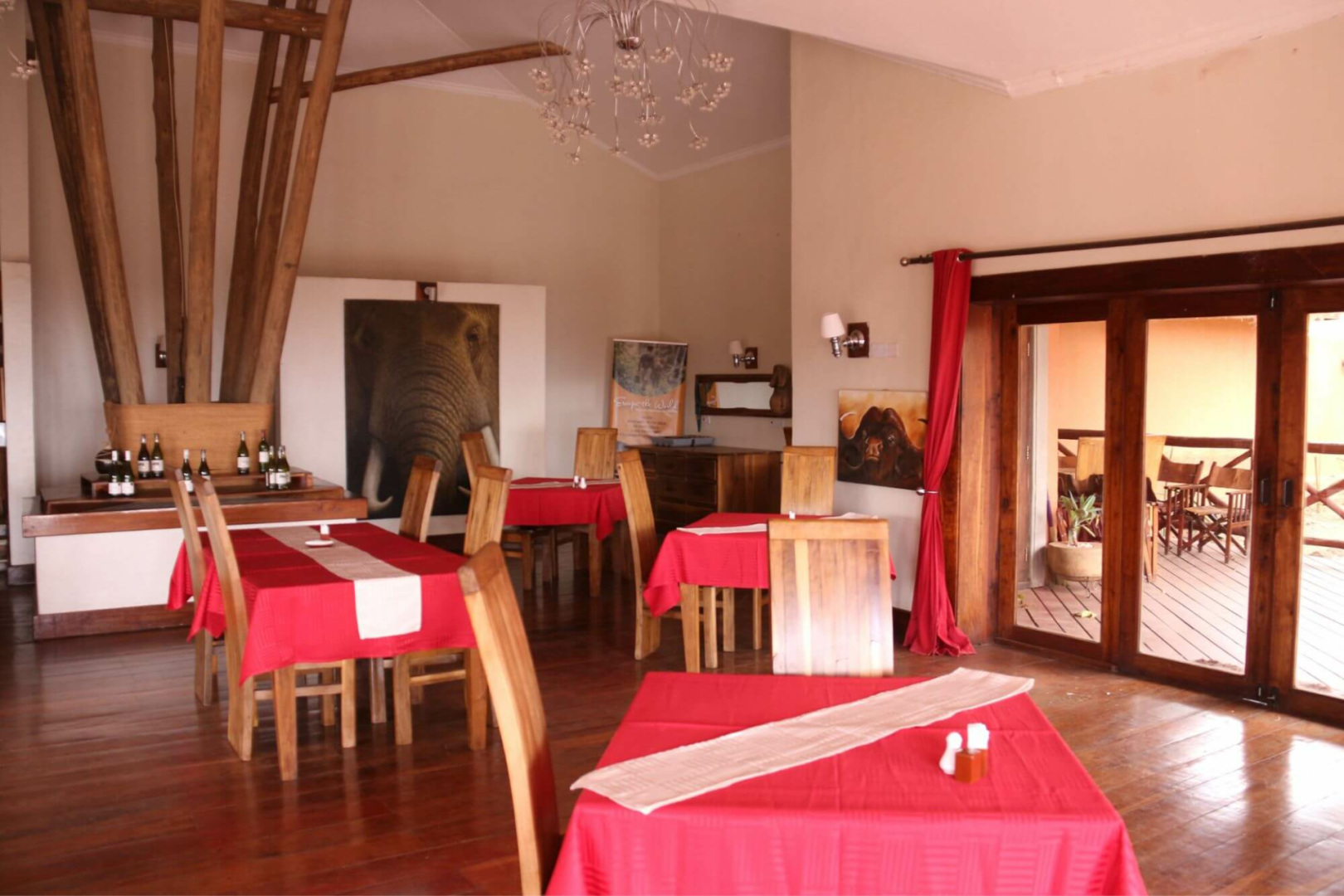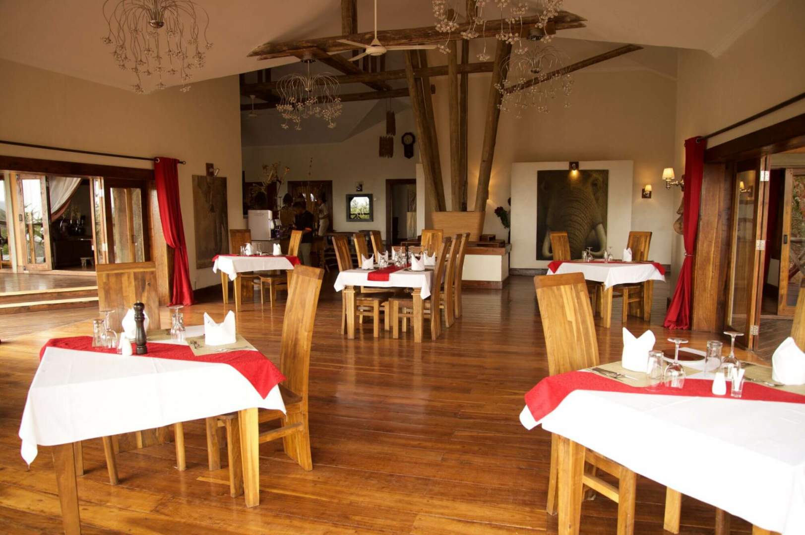 Die Lodge liegt majestätisch über dem ostafrikanischen Tal mit herrlichem Blick auf den Manyara-See und seinen grünen, dichten Wald, der sich am Ufer ausbreitet. Die Lodge ist wunderschön gestaltet mit einem großzügigen Haupthaus, das an ein Herrenhaus aus der Kolonialzeit erinnert und sich nach der Rezeption und einem kleinen Kuriositätenladen zu einem großen, geräumigen Restaurant und einer Bar öffnet, die wiederum zu einer großen Terrasse führen, die sich auf zwei Ebenen erstreckt.