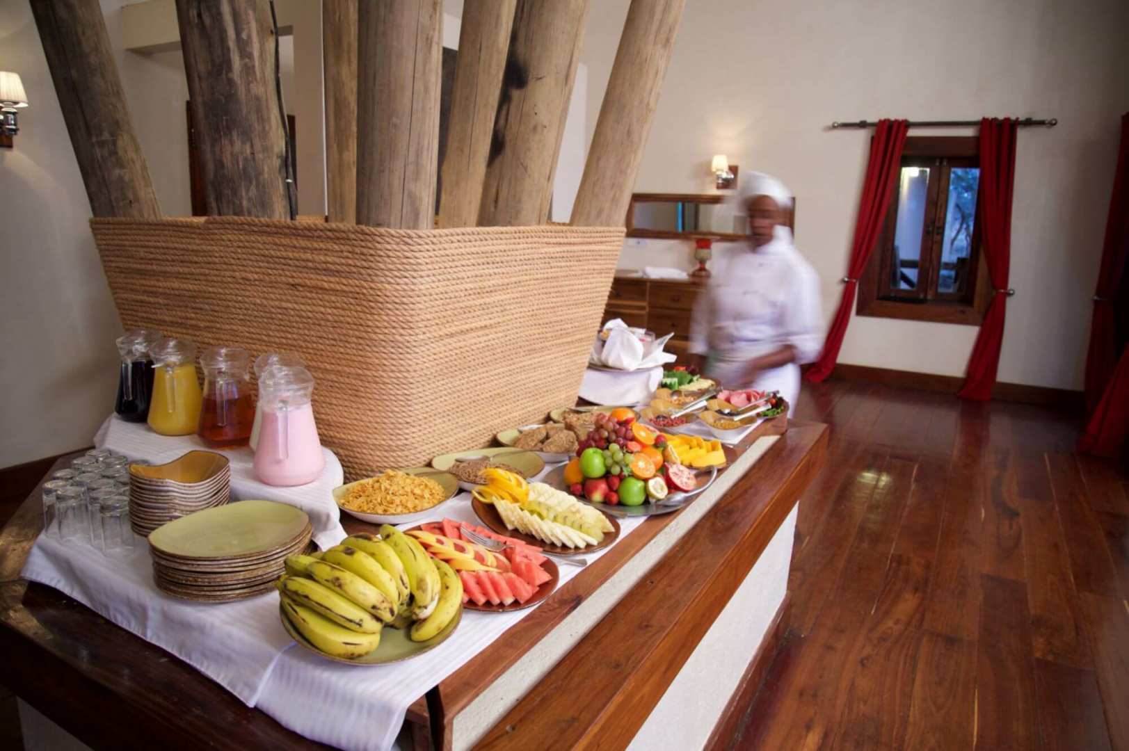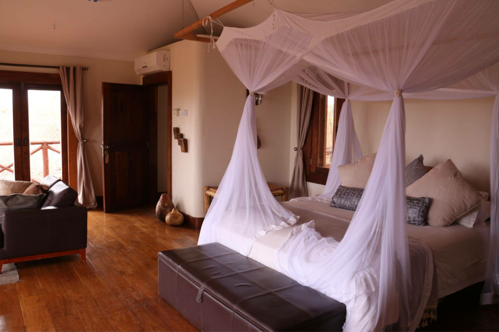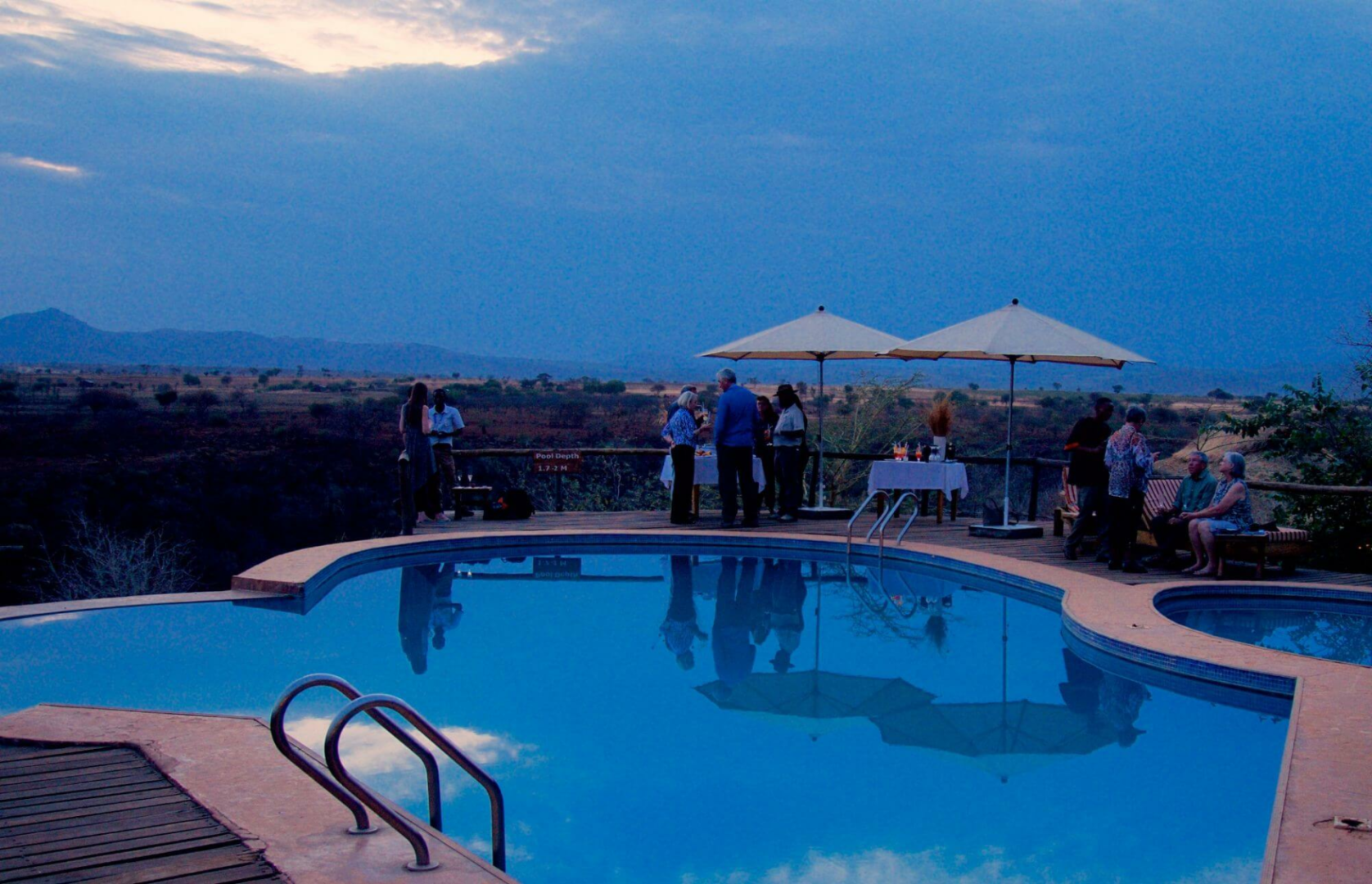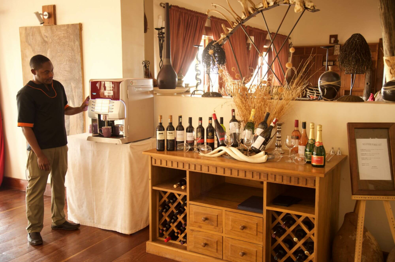 Die Lodge liegt majestätisch über dem ostafrikanischen Tal mit herrlichem Blick auf den Manyara-See und seinen grünen, dichten Wald, der sich am Ufer ausbreitet. Die Lodge ist wunderschön gestaltet mit einem großzügigen Haupthaus, das an ein Herrenhaus aus der Kolonialzeit erinnert und sich nach der Rezeption und einem kleinen Kuriositätenladen zu einem großen, geräumigen Restaurant und einer Bar öffnet, die wiederum zu einer großen Terrasse führen, die sich auf zwei Ebenen erstreckt.