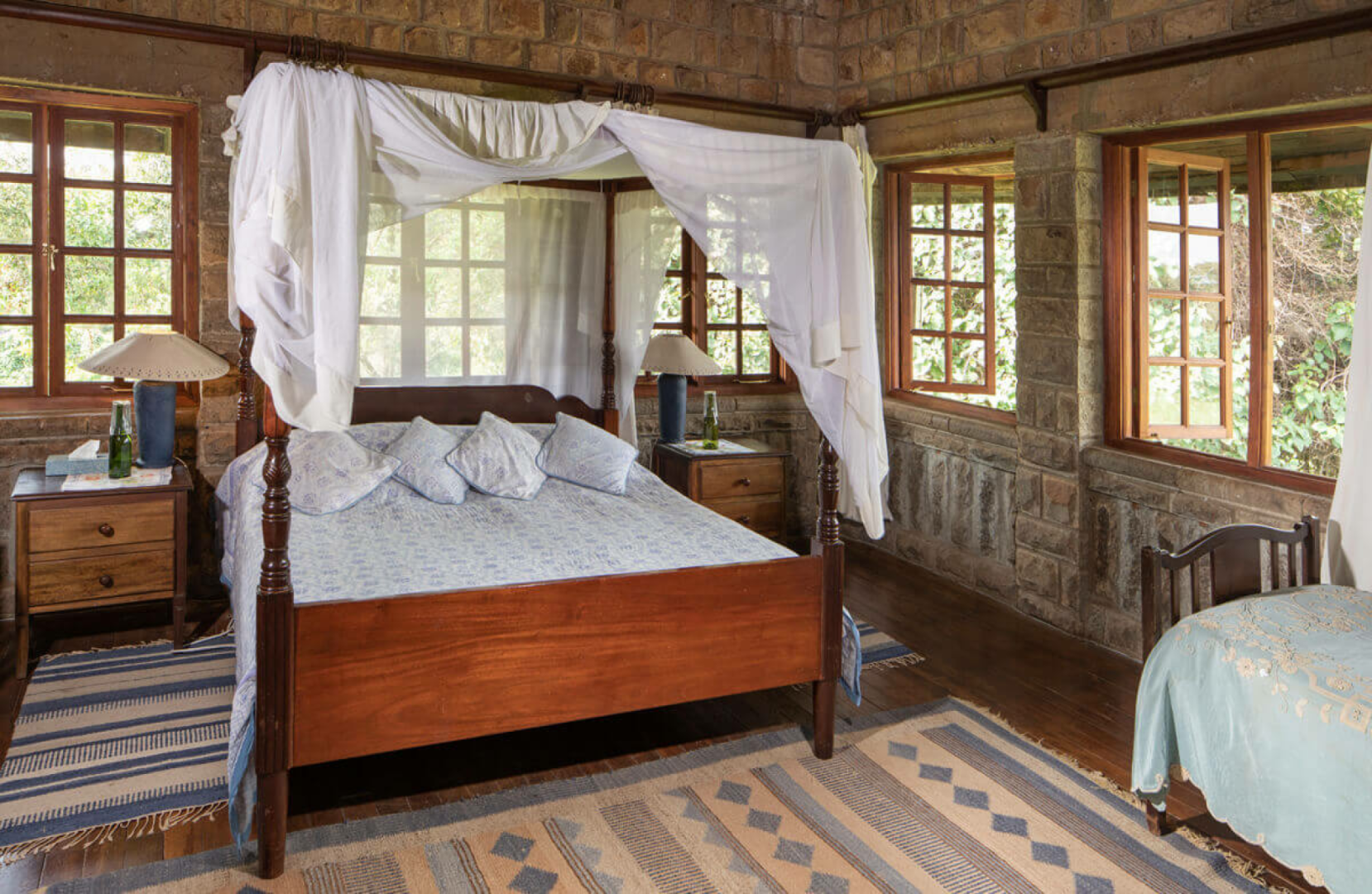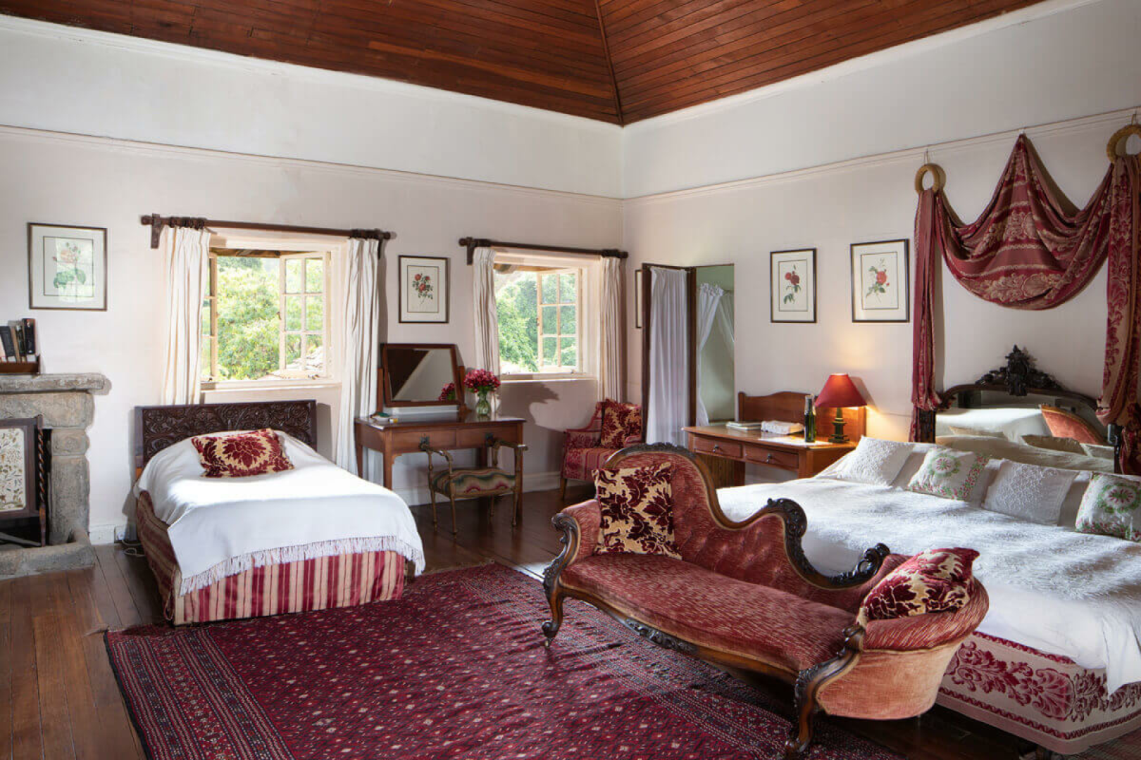 Die Unterbringung der Gäste erfolgt in fünf Schlafzimmern im Haupthaus und drei in einem frei stehenden Ferienhaus. Die Zimmer haben Polsterbetten aus Massivholz, einen Kamin und ein sehr elegantes Badezimmer mit Badewanne.