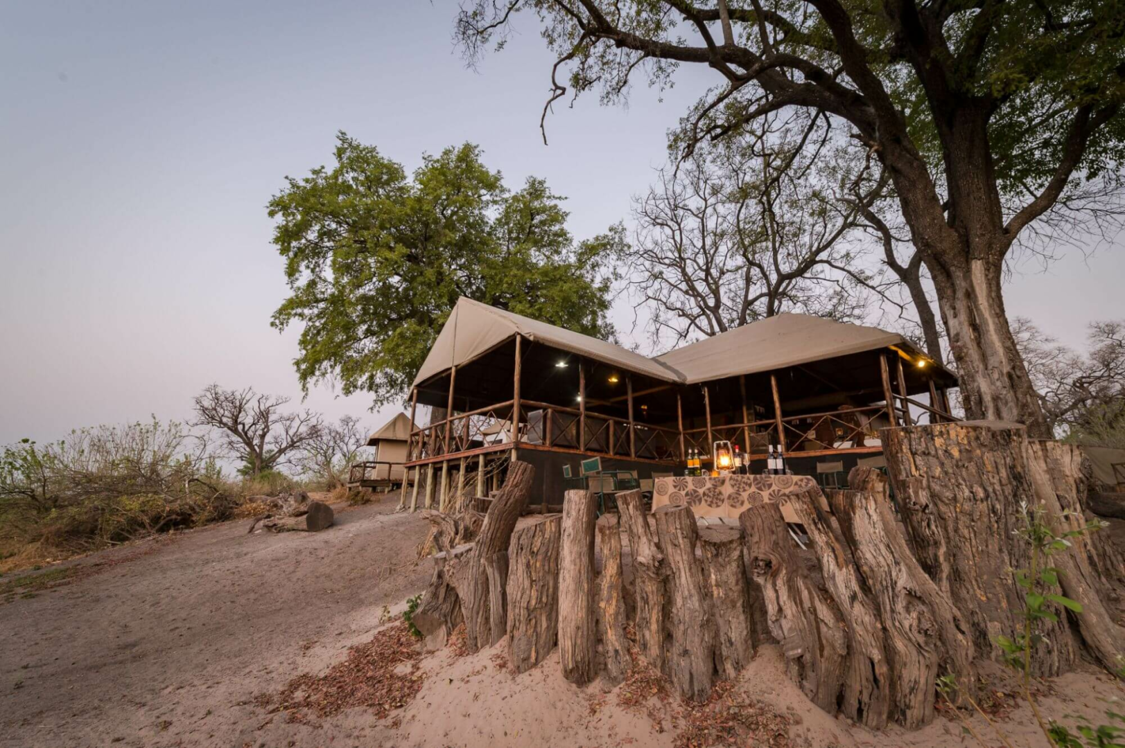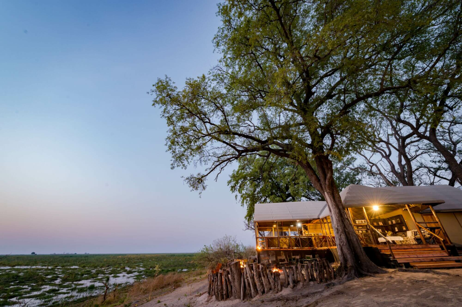 Das Lagoon Camp liegt an einer Lagune des Kwando-Flusses unter uralten, riesigen Ebenholz- und Marulabäumen nördlich der 2.320 km² großen Kwando-Konzession.