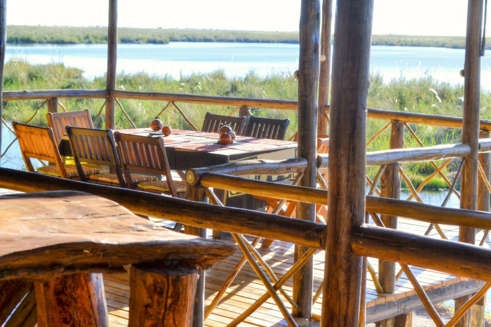 Die herzhaften Mahlzeiten werden auf einem gemeinsamen Esstisch draußen auf dem Beobachtungsdeck serviert. Ein paar Plüschsofas laden zum Entspannen an. Die Feuerstelle mit Blick auf die Lagune ist ein toller Ort, um die weitläufige Aussicht und die atemberaubende Umgebung zu genießen.