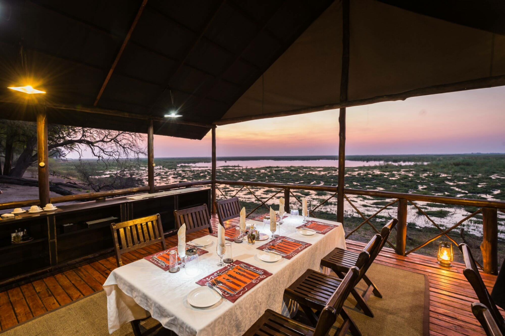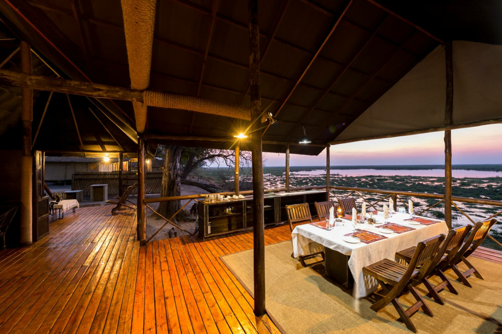 Das Camp Linyanti blickt selbst auf eine große Lagune und vermittelt ein unverkennbares Gefühl der Abgeschiedenheit. Angeboten werden Pirsch- und Bootsfahrten. Die Gegend ist in der Hochsaison außerordentlich wildreich, mit überall anzutreffenden Elefanten, Büffeln und Zebras, gefolgt von Puku-, Pferde- und Rappenantilopen. Die wichtigsten Raubtiere der Region sind neben Löwen auch Leoparden und Wildhunde.