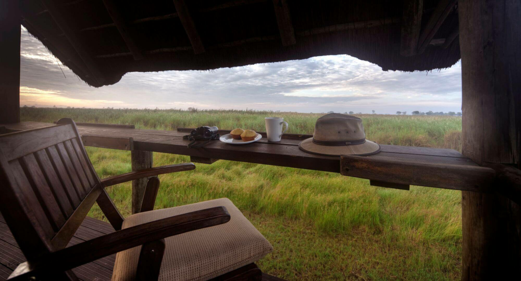 Camp, direkt an den Liyanti-Sümpfen gelegen, nicht weit vom Ufer des