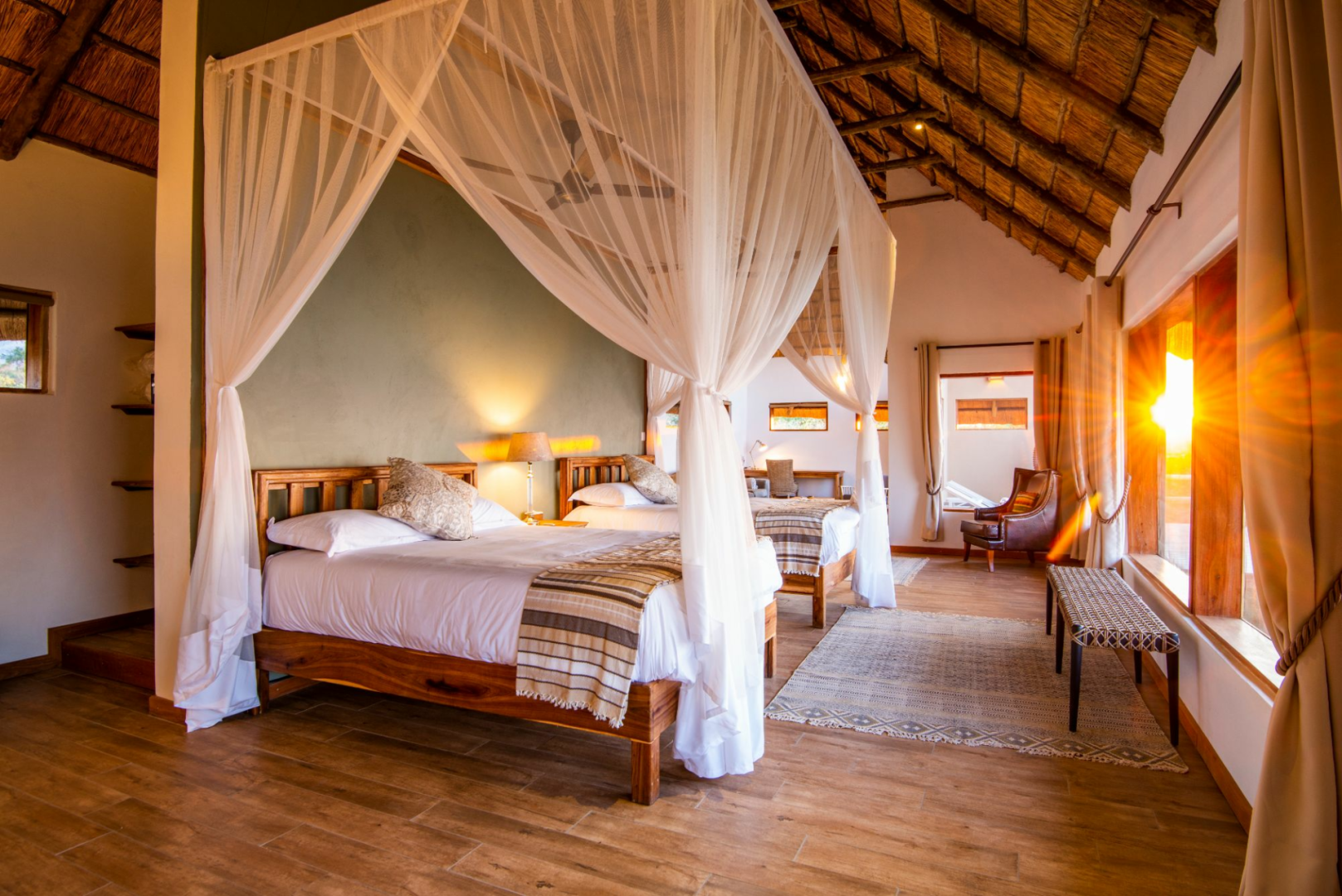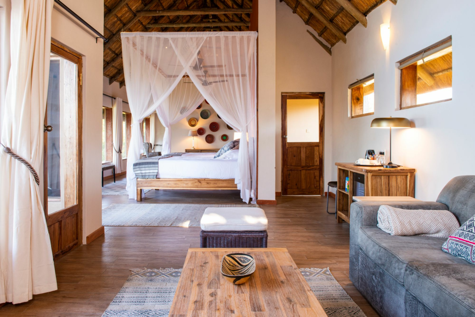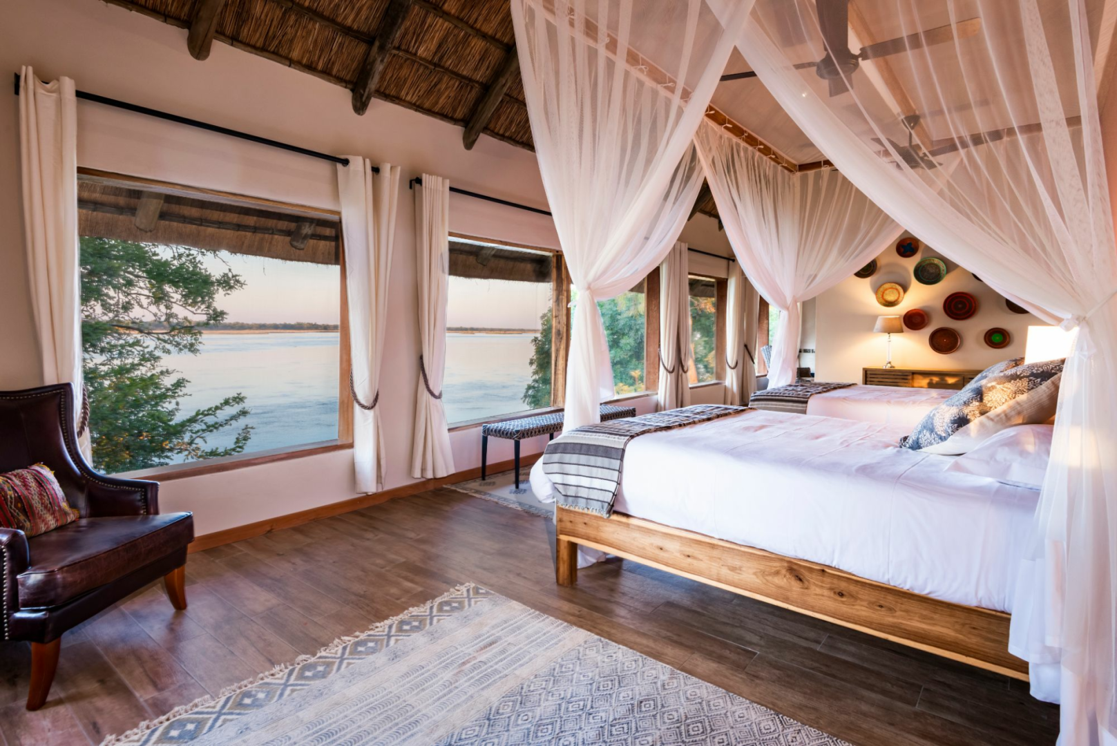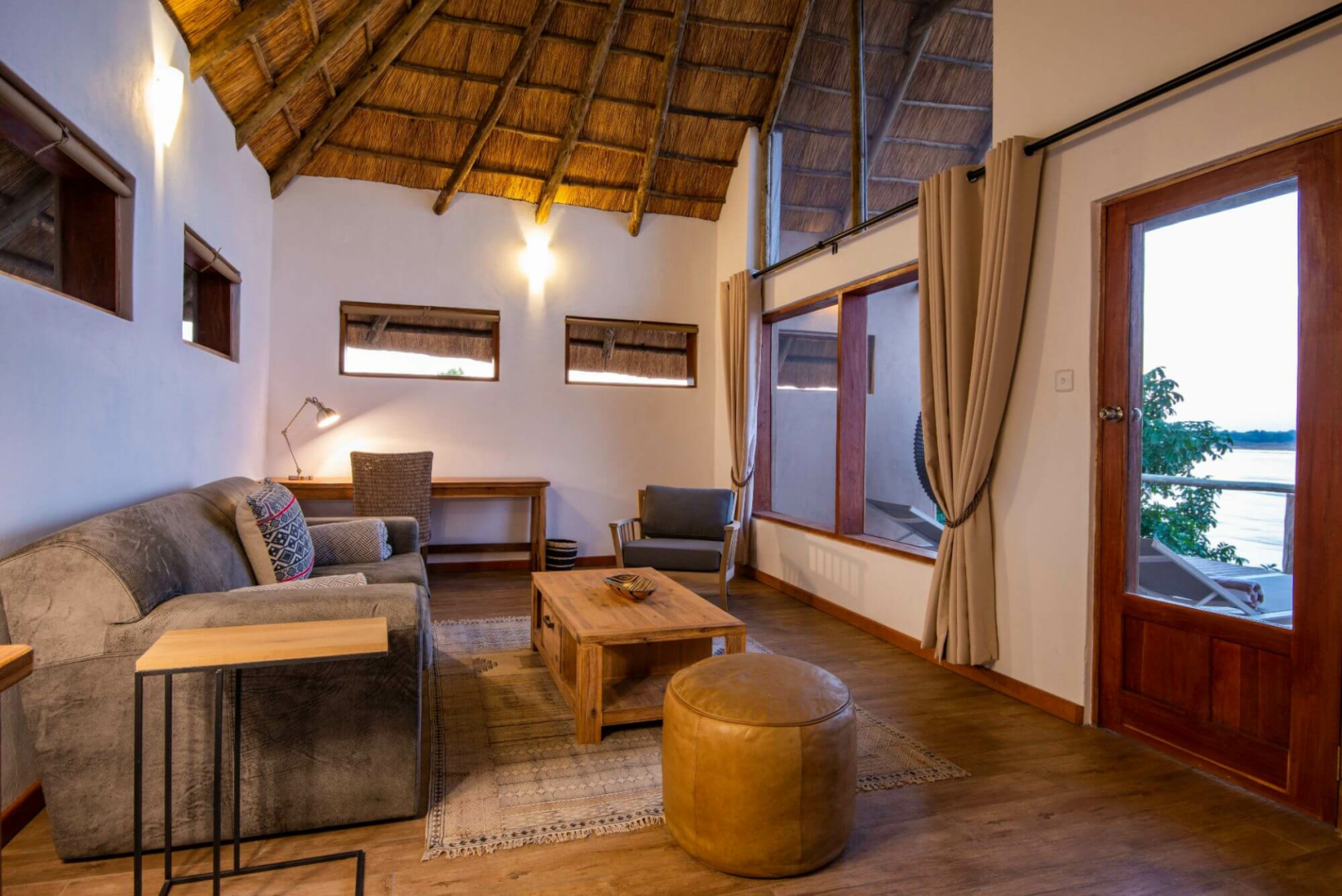 Gäste werden in vier großen, sehr komfortablen Chalets mit riesigen Verandas direkt mit Flussufer untergebracht. Die Inneneinrichtung ist afrikanisch modern, mit großen Bädern inklusive frei stehender Badewanne und uneingeschränkten Blick auf den Fluss.