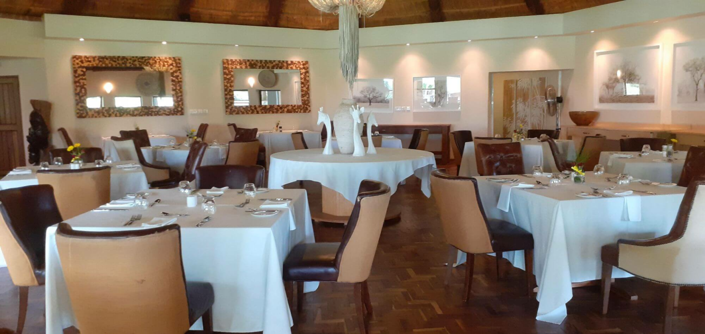 Nebenan befindet sich der riesige Restaurantbereich. Beeindruckend ist der riesige Kronleuchter, der der Schwerkraft zu trotzen scheint und ein fantastisches Herzstück des Raumes bildet. Das Restaurant in Lilayi ist für das allgemeine Publikum öffentlich zugänglich und rühmt sich als eine der besten Essaddressen der Stadt zu sein. Es wird abends zu einem belebten Ort voll mit den Lodge eigenen Gästen, Einheimischen und Mitgliedern Lusakas Expat-Community.