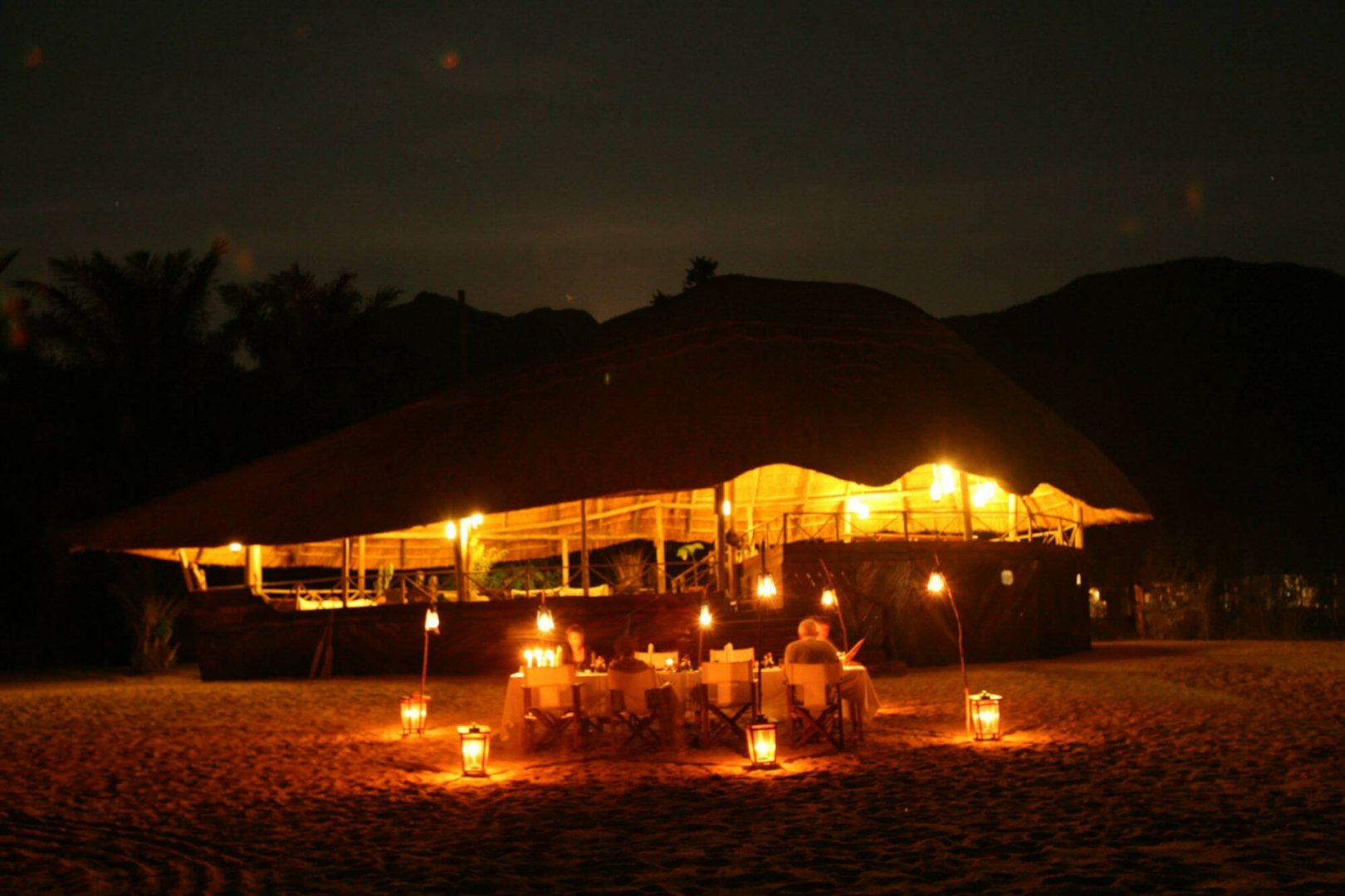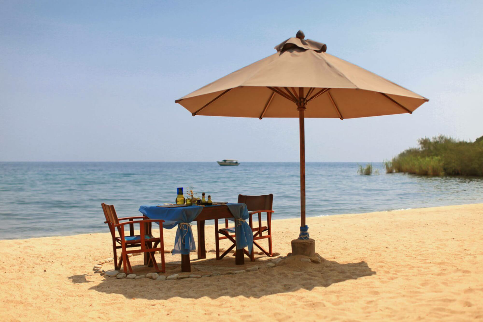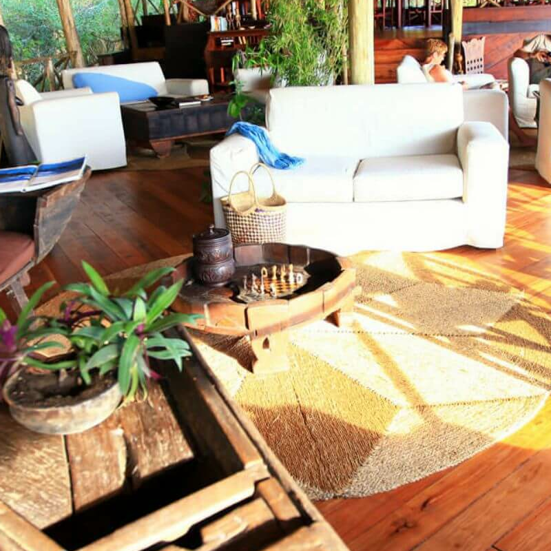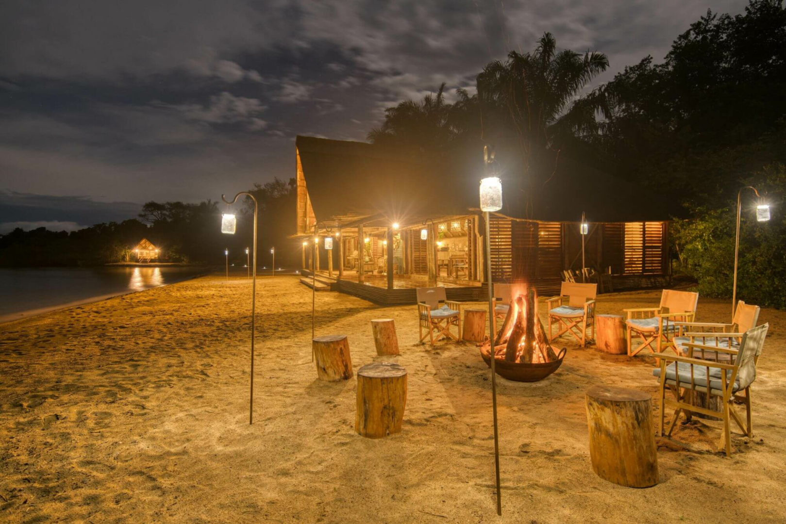 Die Lodge sitzt direkt an einem Traumstrand am Tanganyika-See und pocht mit einer großen offene Hauptboma, wo Lounge und Restaurantbereich untergebracht sind. Insbesondere abends herrscht hier eine magische Stimmung als die Feuerstelle angemacht wird und die ganzen öffentlichen Bereiche mit Parafinlaternen sehr atmosphärisch geschmückt werden.